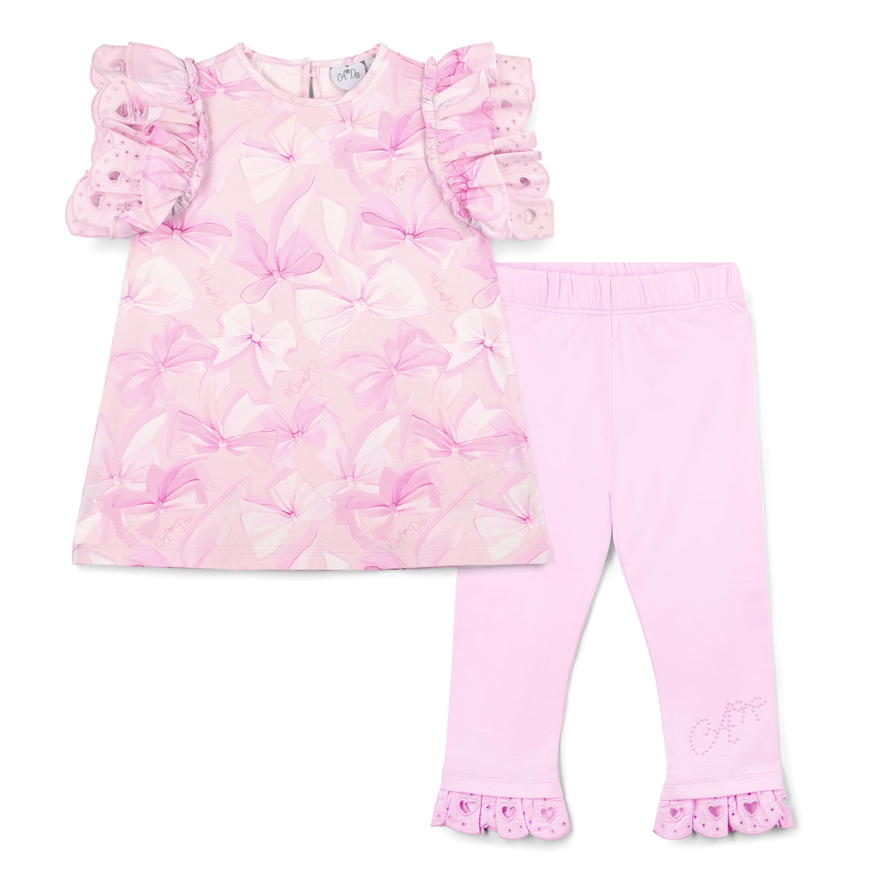 A Dee Bowtique Chic Rachel Bow Print Legging Set With Broderie Anglaise - Pink Blossom