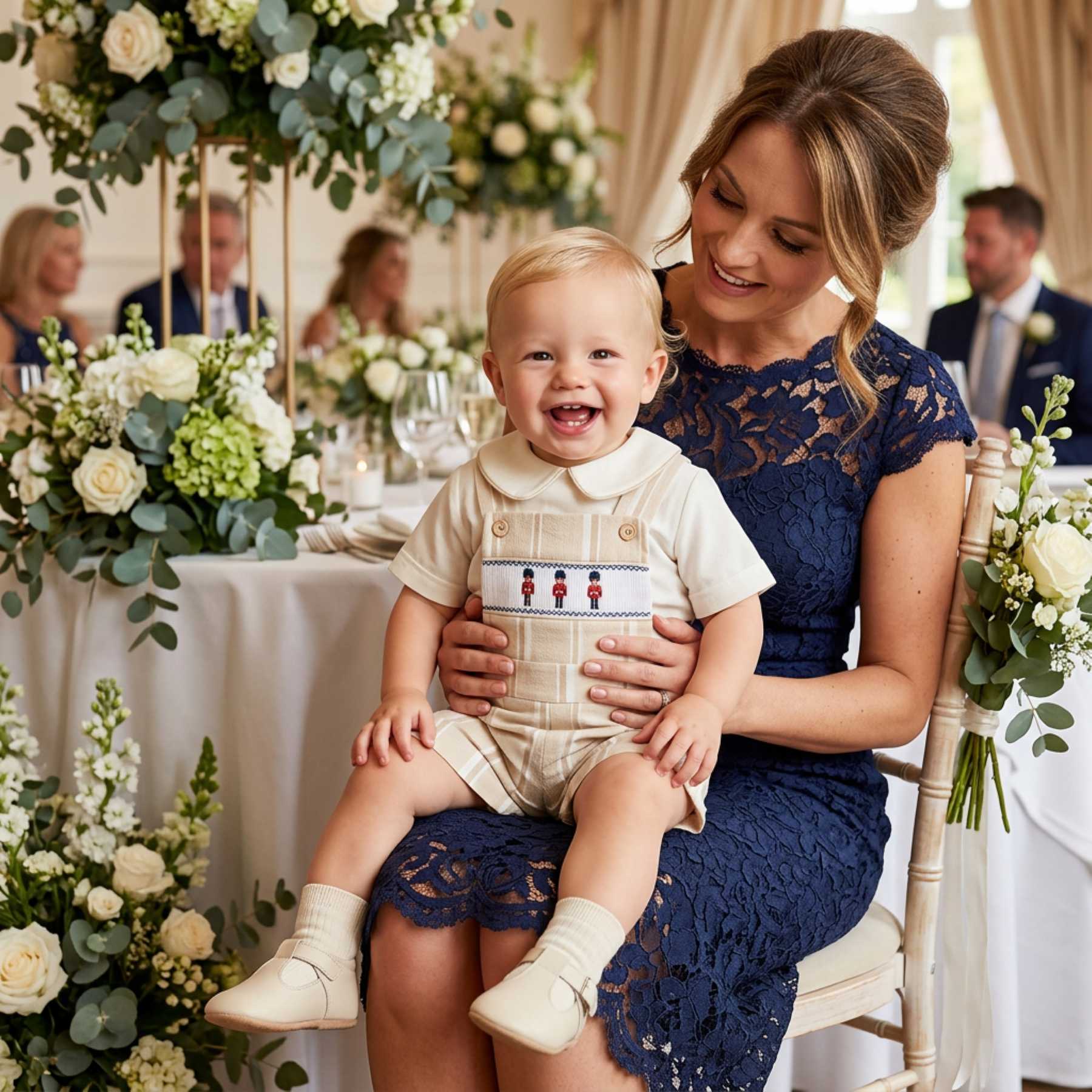 Beau KiD Boys Smocked Guards Dungarees Set X 2 - Beige Stripe