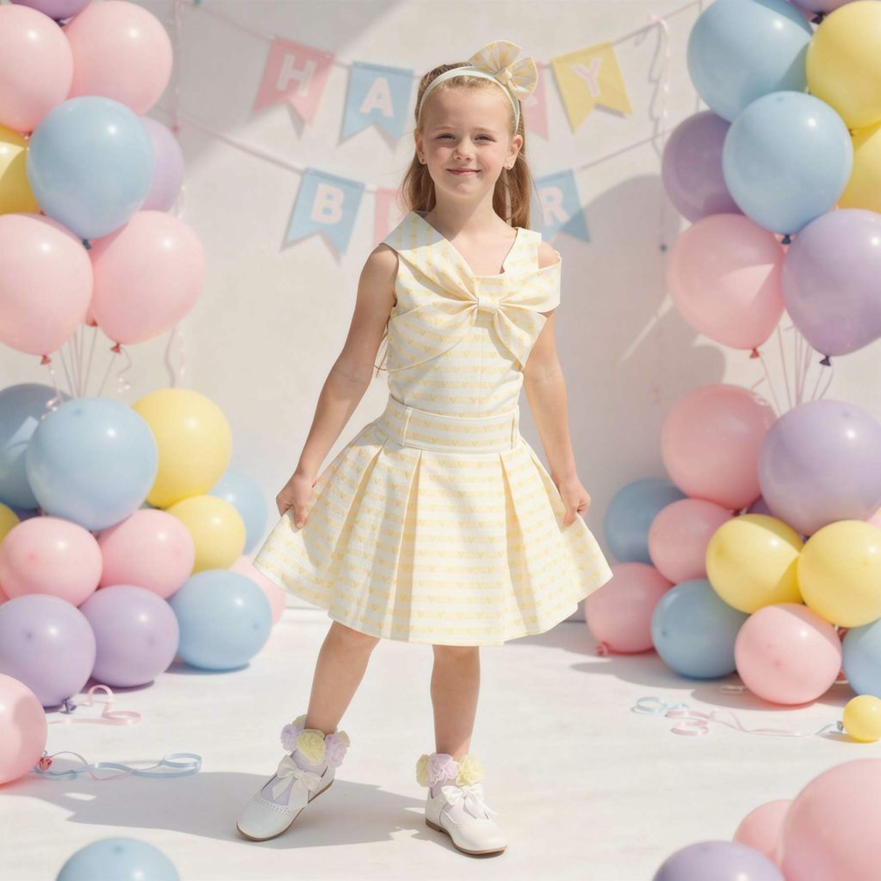 Beau KiD Girls Heart Print Skirt Top & Headband Set x 3 - Lemon