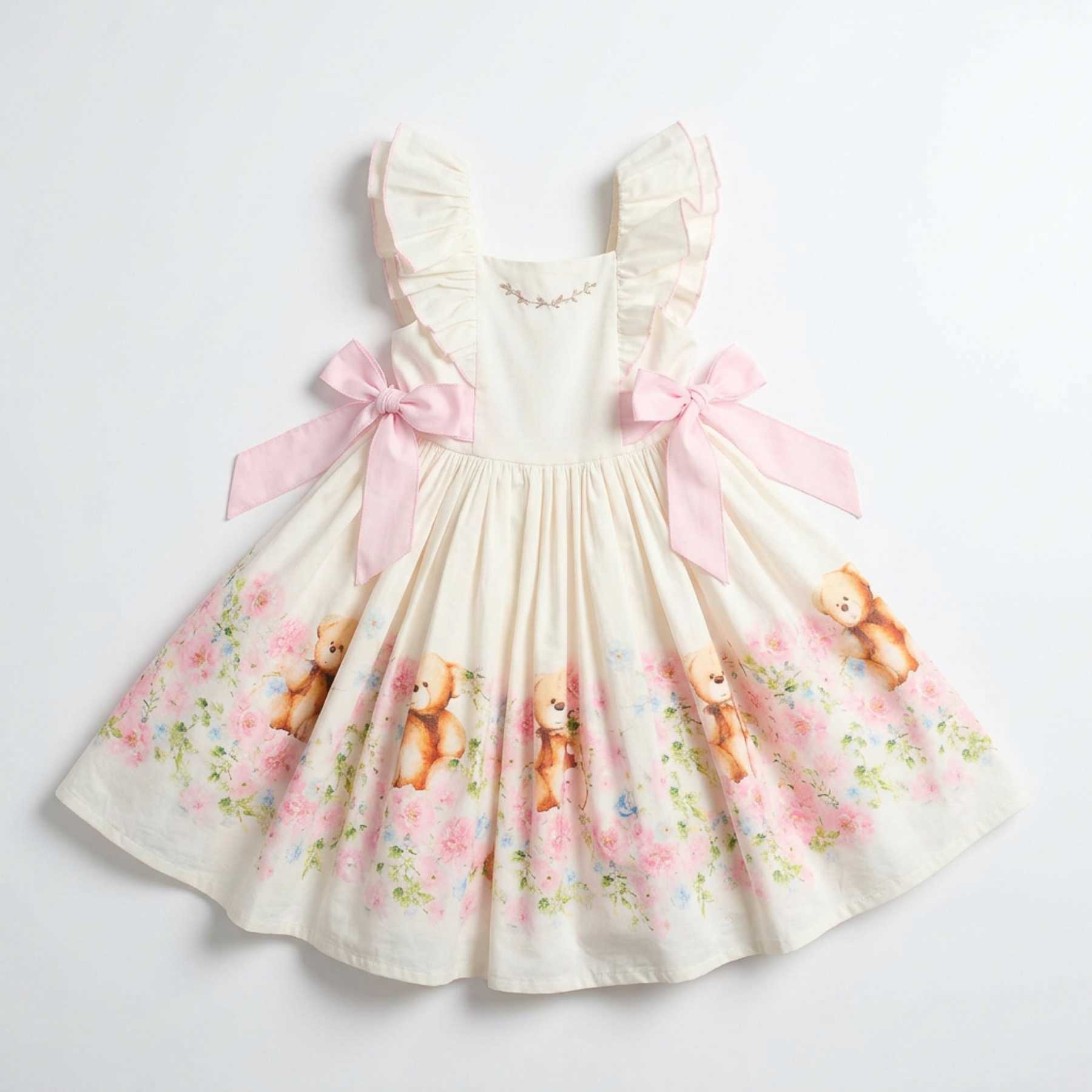 Beau KiD Girls Summer Ruffle Sleeve Teddy Dress - White Pink Multi