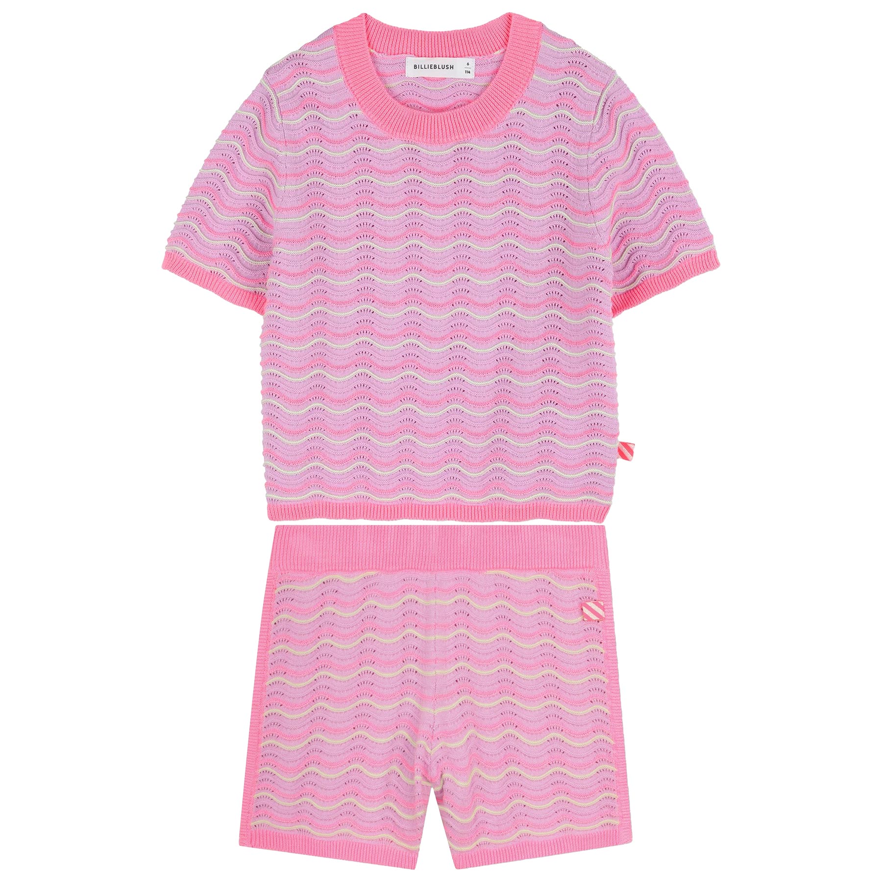 Billie Blush Girls Summer collection.  Soft knit top and shorts set with wave knit patten.  Easy to fit and fun to wear - bright and stunning on.  Perfect summer holiday outfit.