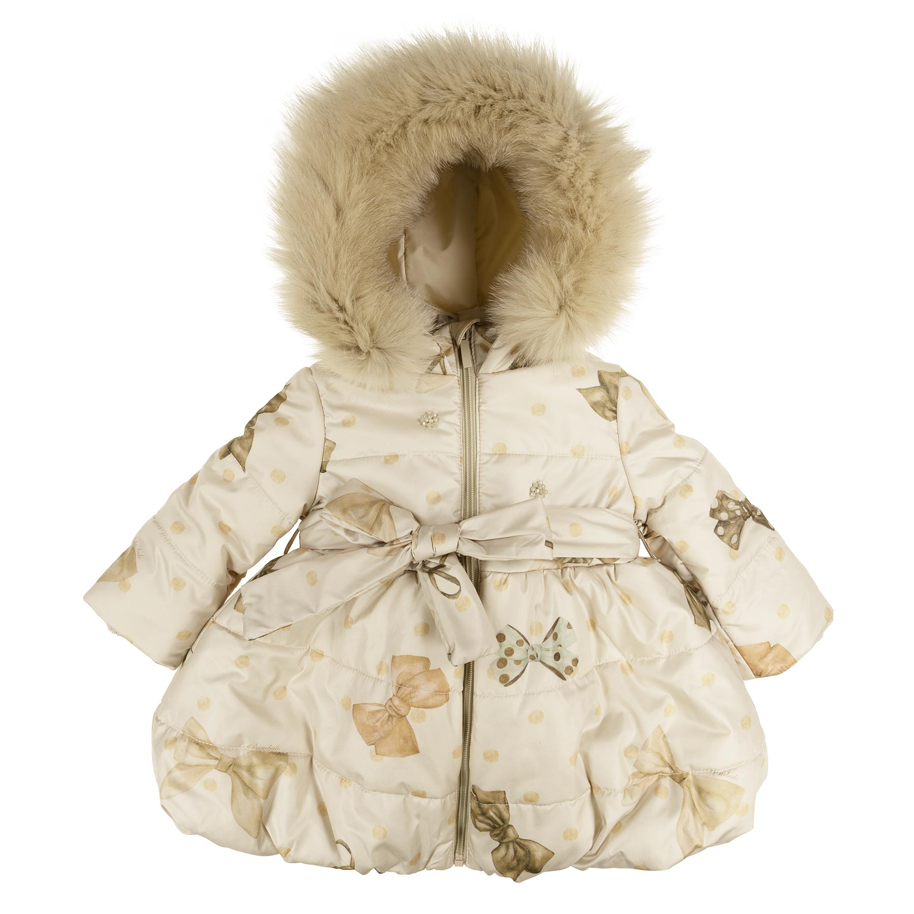 Bimbalo Girls Padded Coat with Exclusive Bow Print - Beige