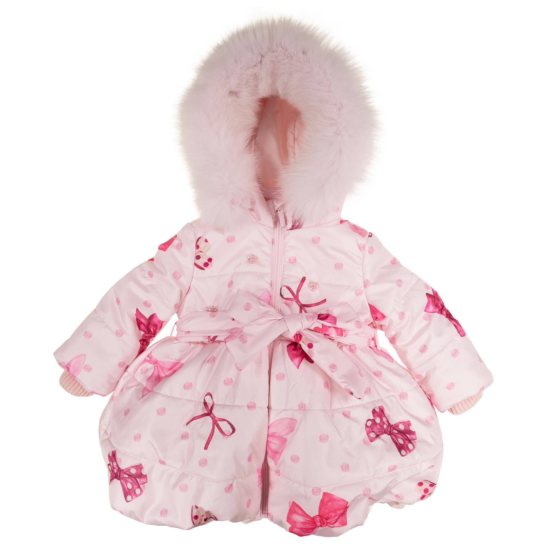 Bimbalo Girls Padded Coat with Exclusive Bow Print - Pink