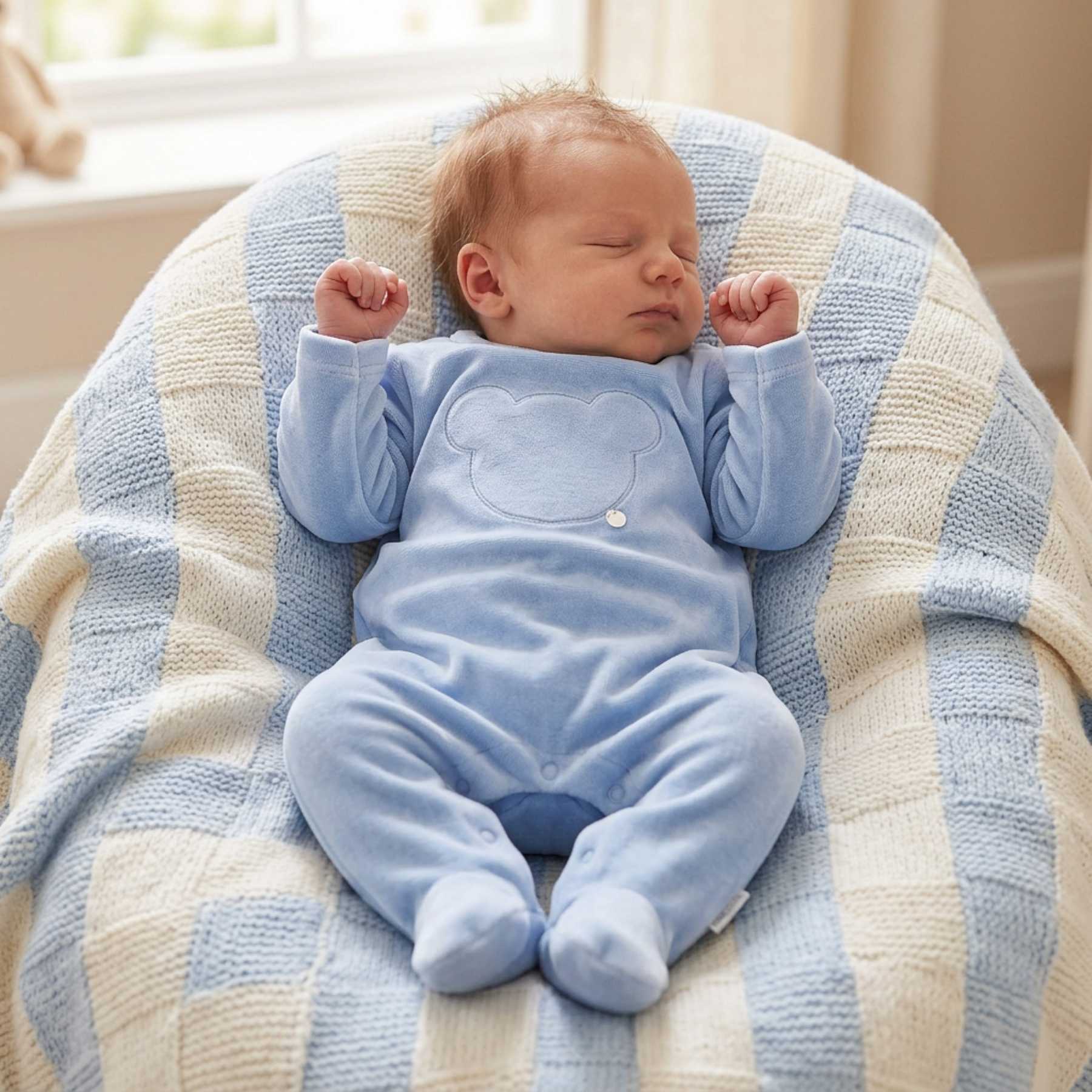 Blues Baby Boys Velour Teddy Bear Sleeper - Powder Blue