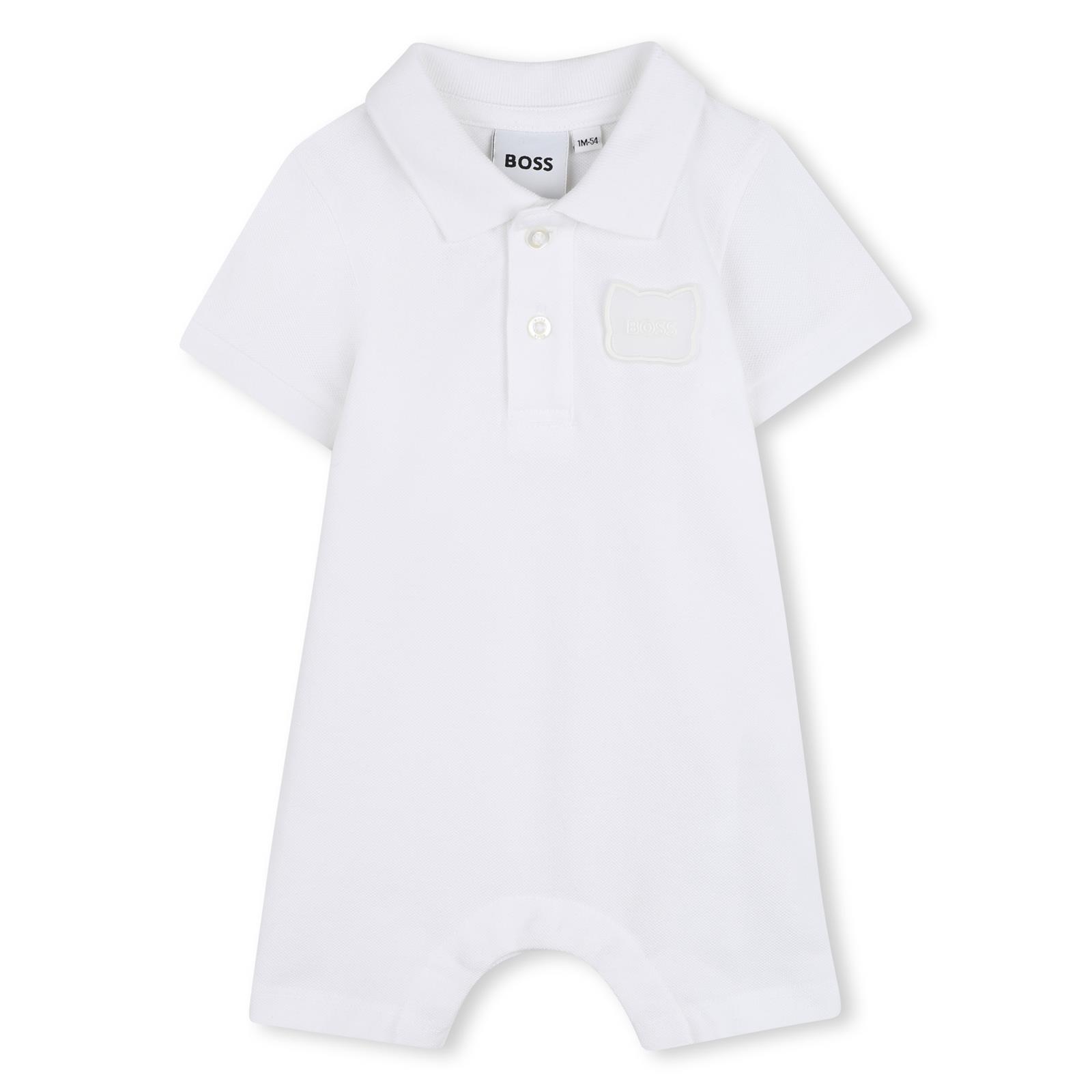 BOSS Baby Boys Organic Pique Cotton Shortie Romper - White