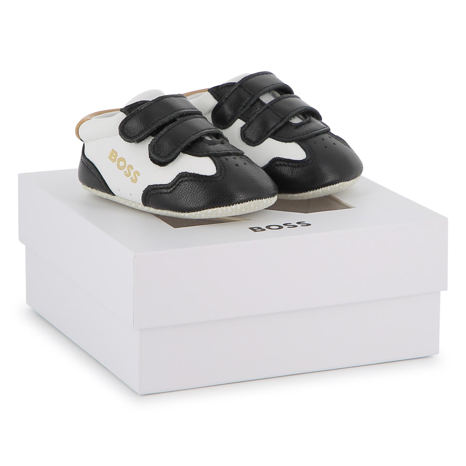 BOSS Baby Boys Soft Leather Logo Trainers In Gift Box - Black White