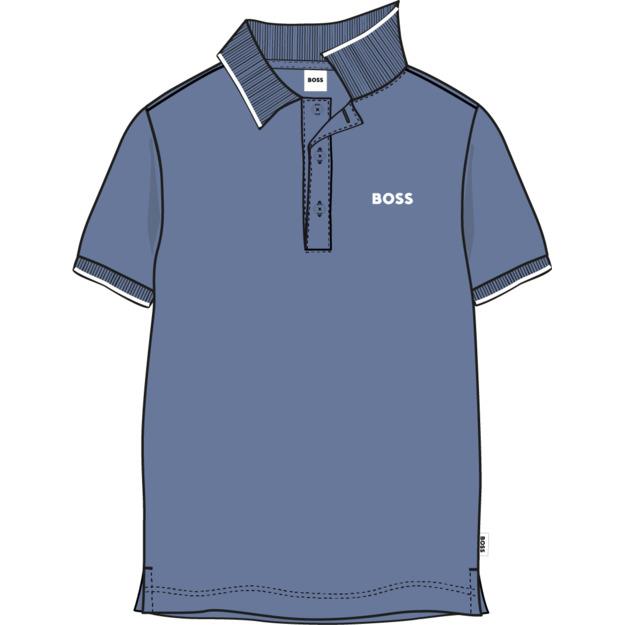 BOSS Boys Classic style short sleeve polo with contrasting edge. The polo features 3 buttons and a small 'BOSS' logo on the chest.  Made in soft stretchy 100% cotton pique. Polo collar with contrasting edge.  Perfect for wearing anytime.  Other matching items available.
