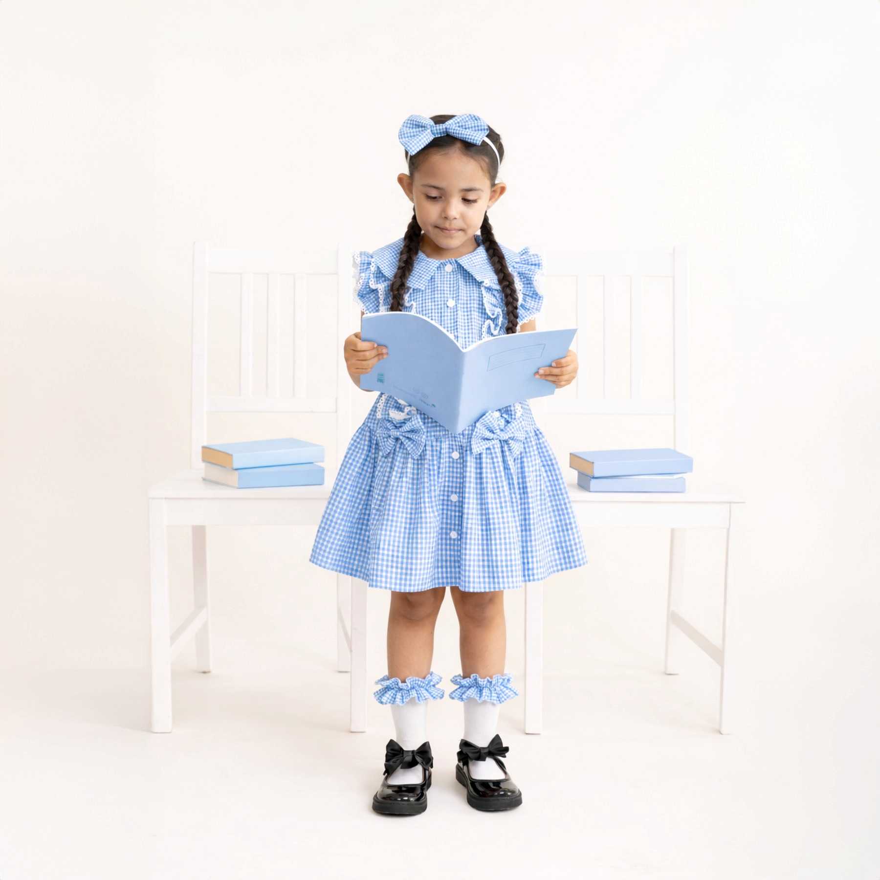 PRE ORDER Caramelo Kids Girls Double Bow Dropped Waist School Dress - Blue Gingham