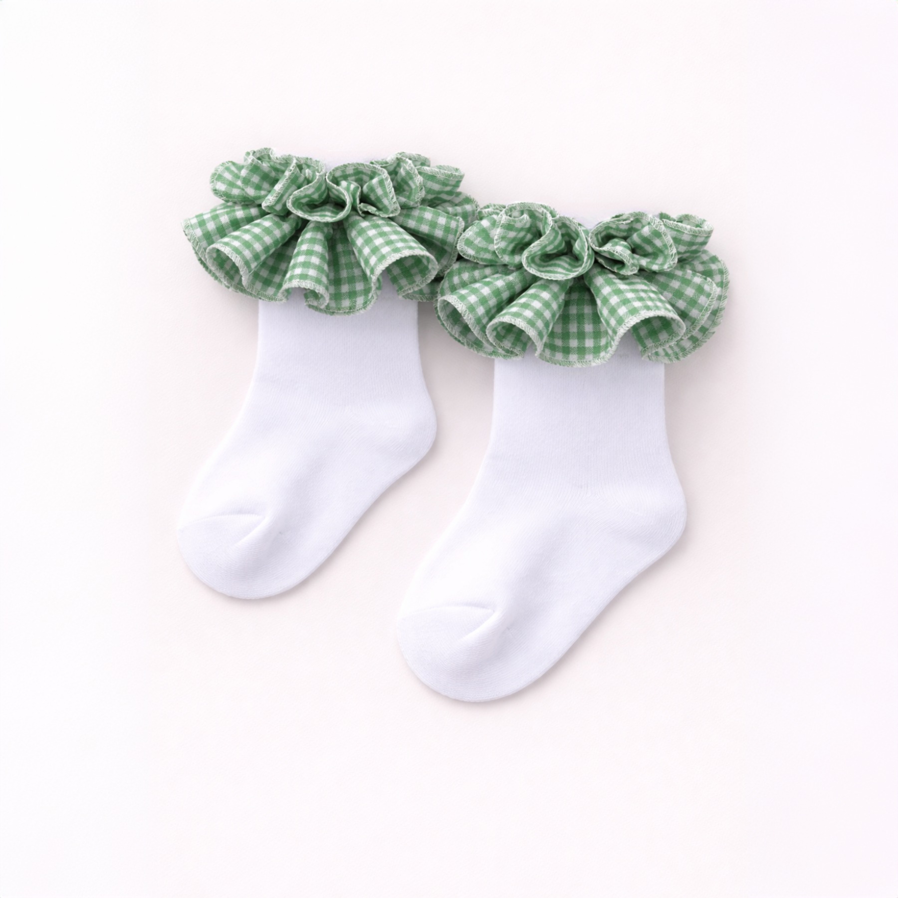 PRE ORDER Caramelo Kids Girls Gingham Ruffle Ankle Socks - Green
