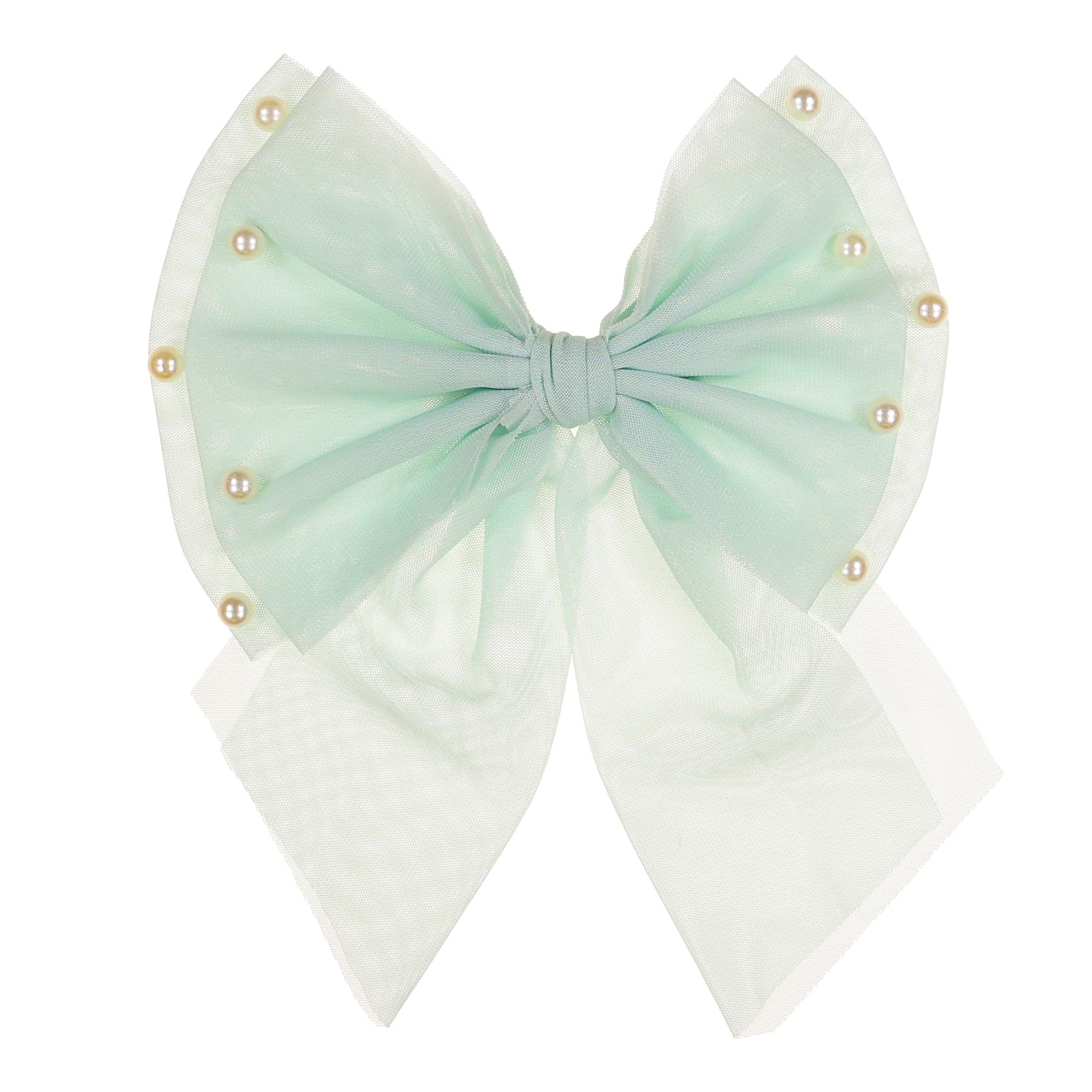 Caramelo Kids Girls Large Tulle & Pearls Hair Bow with Clip - Mint