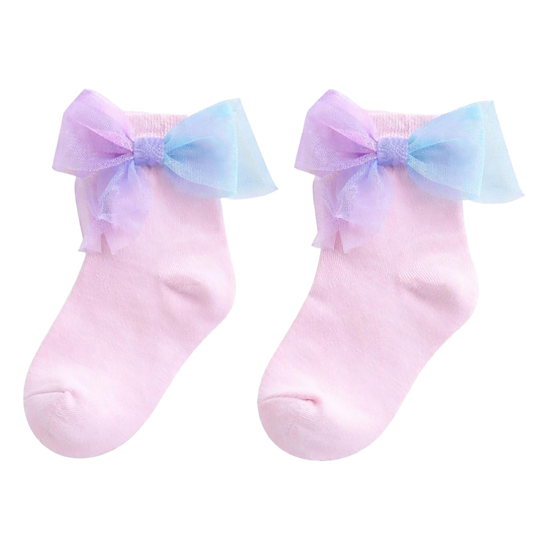 Caramelo Kids Girls Rainbow Tulle Bow Ankle Socks - Pink Multi