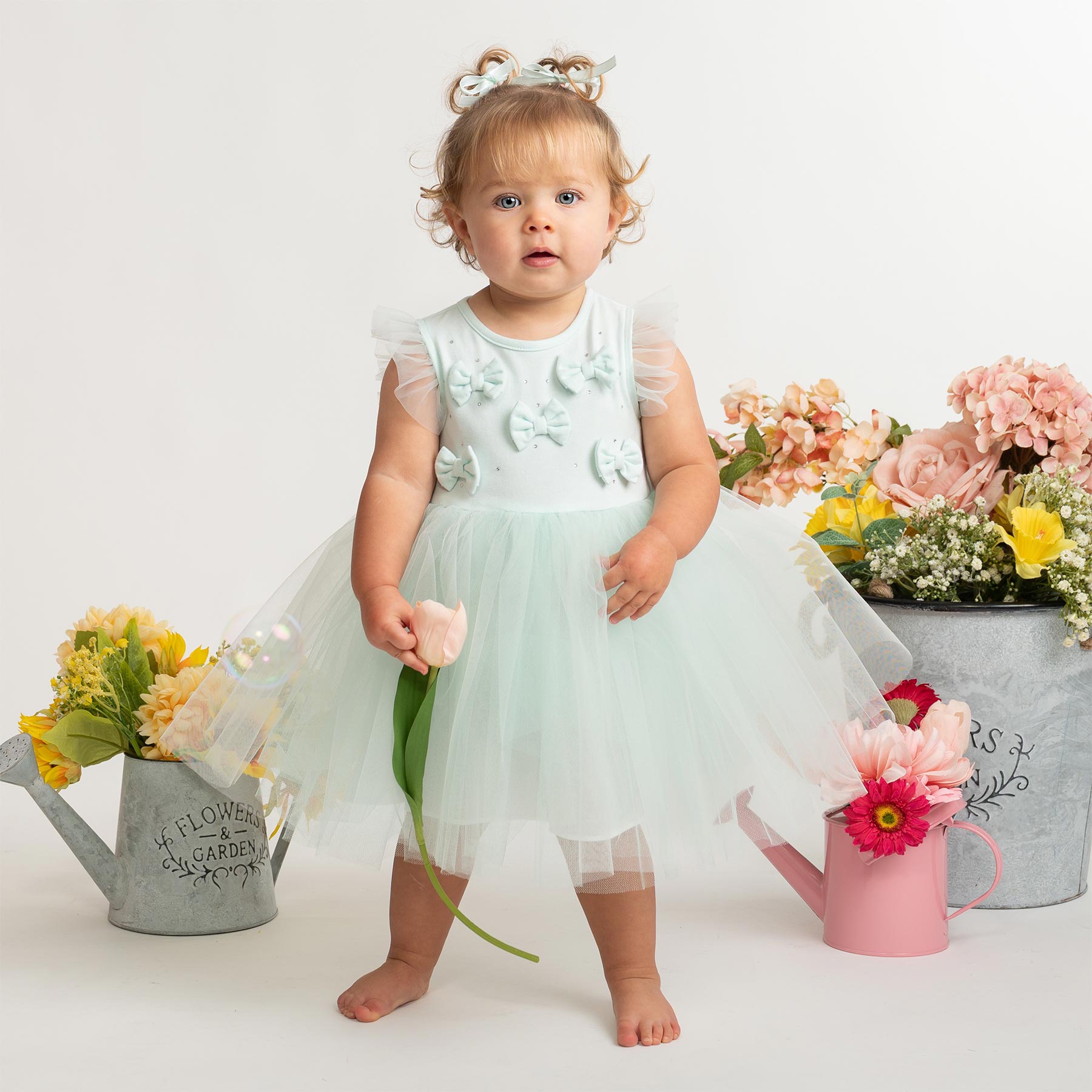 Caramelo Kids Girls Summer Diamonte Bow Party Dress - Mint Green