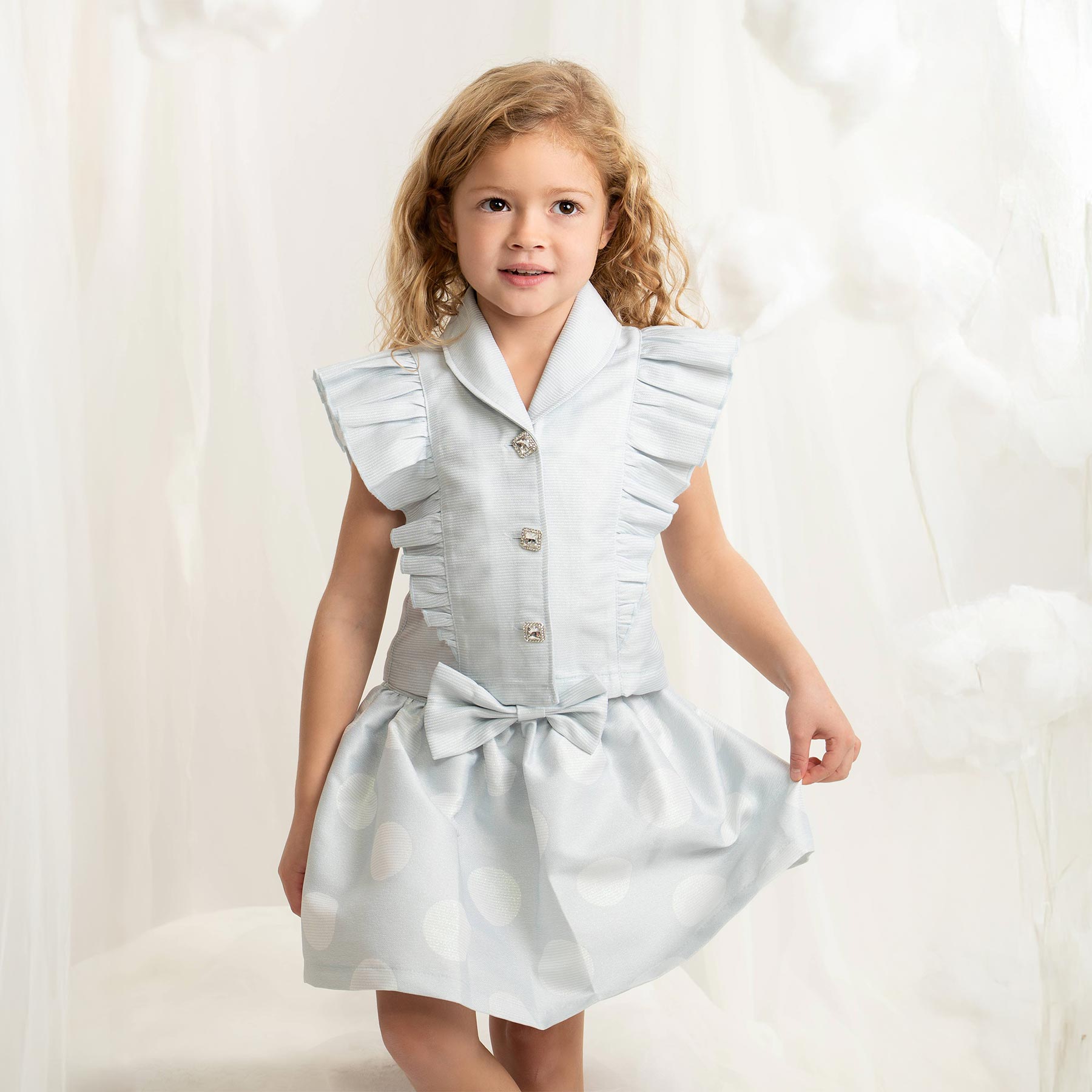 Caramelo Kids Girls Summer Occasion Ruffle Blouse Polka Skirt Set X 2 - Blue Ivory