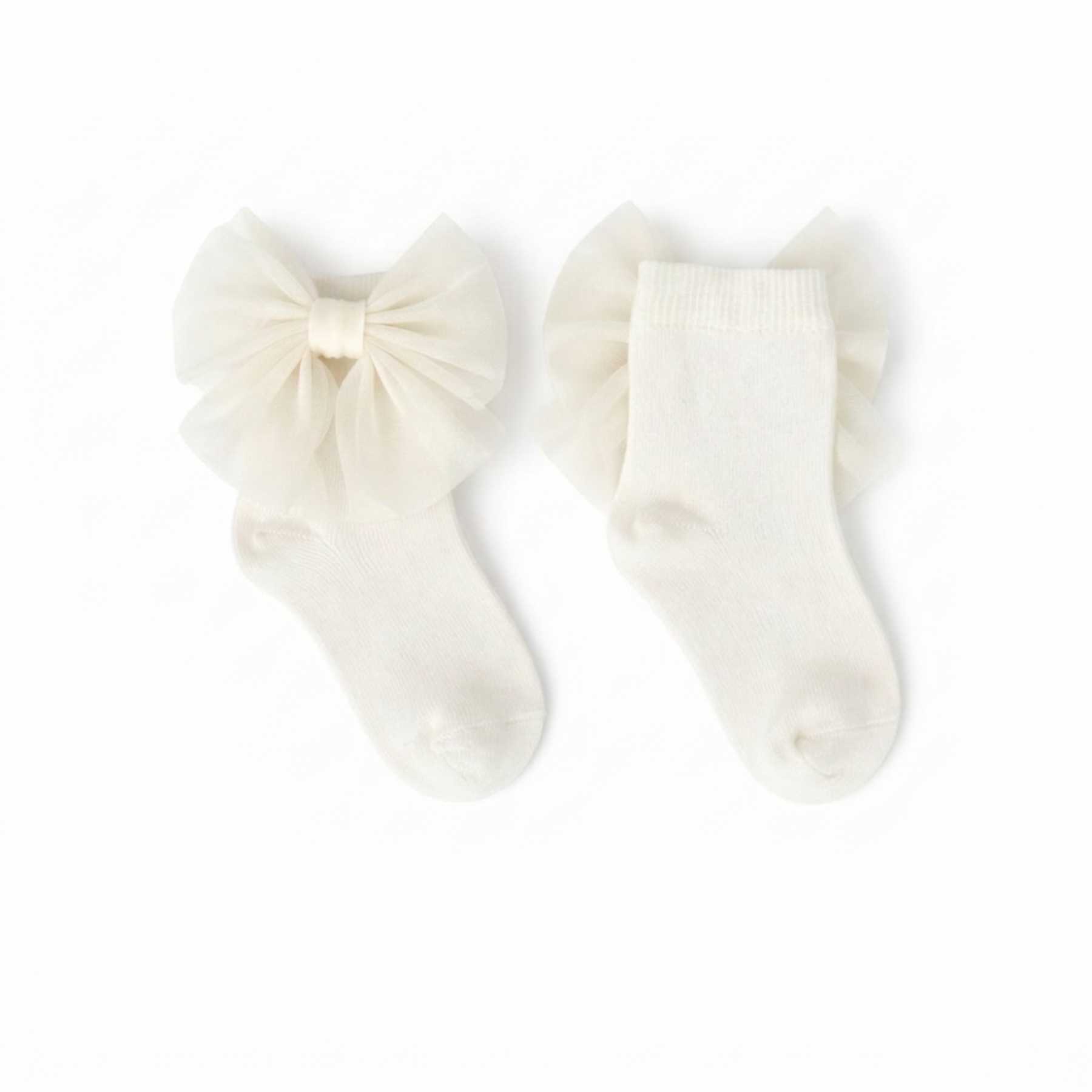 Caramelo Kids Girls Tulle Bow Ankle Socks - Ivory Ivory