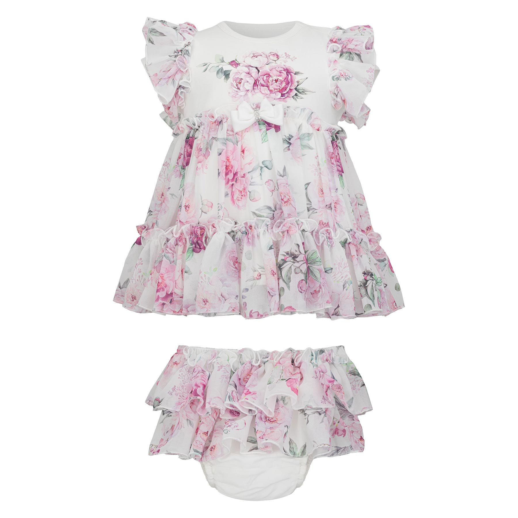 Daga Baby Girls Blush Harmony Peony Dress & Panties Set X 2 - White Pink