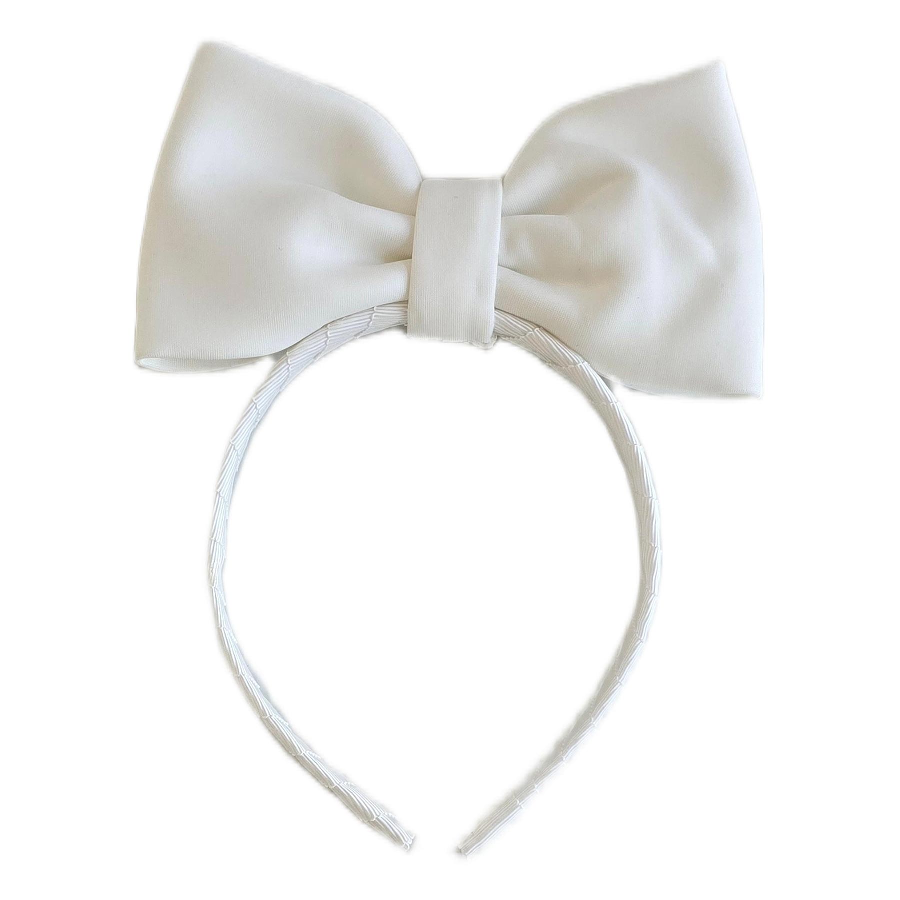 Daga - Girls Blush Harmony Collection -  gorgeous silky white fabric extra large bow on a covered hairband  - One size - Hand Made in Poland.