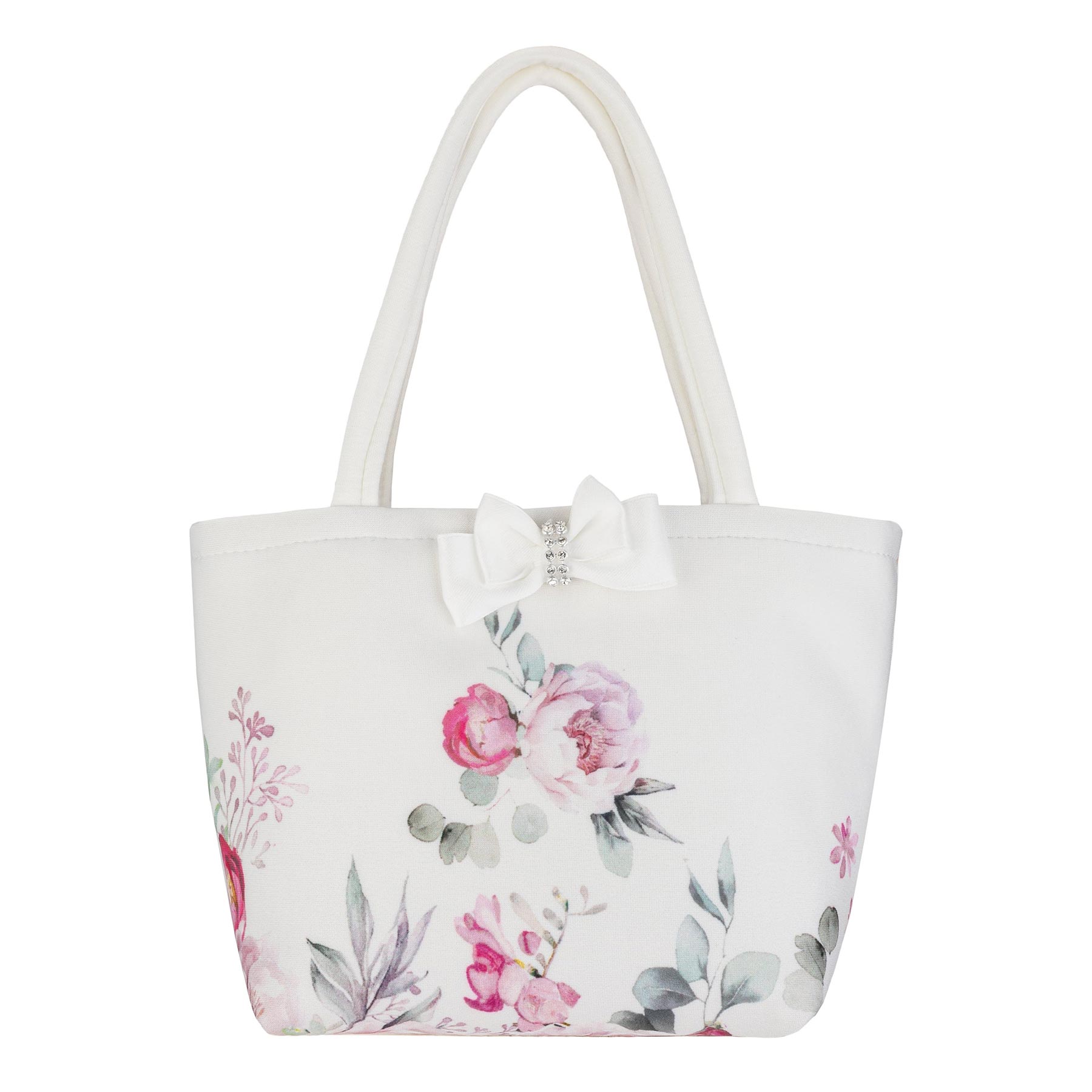 Daga - Blush Harmony Collection - child's handbag in white with peony flower print and diamante center bow - One size - Hand Made in Poland.