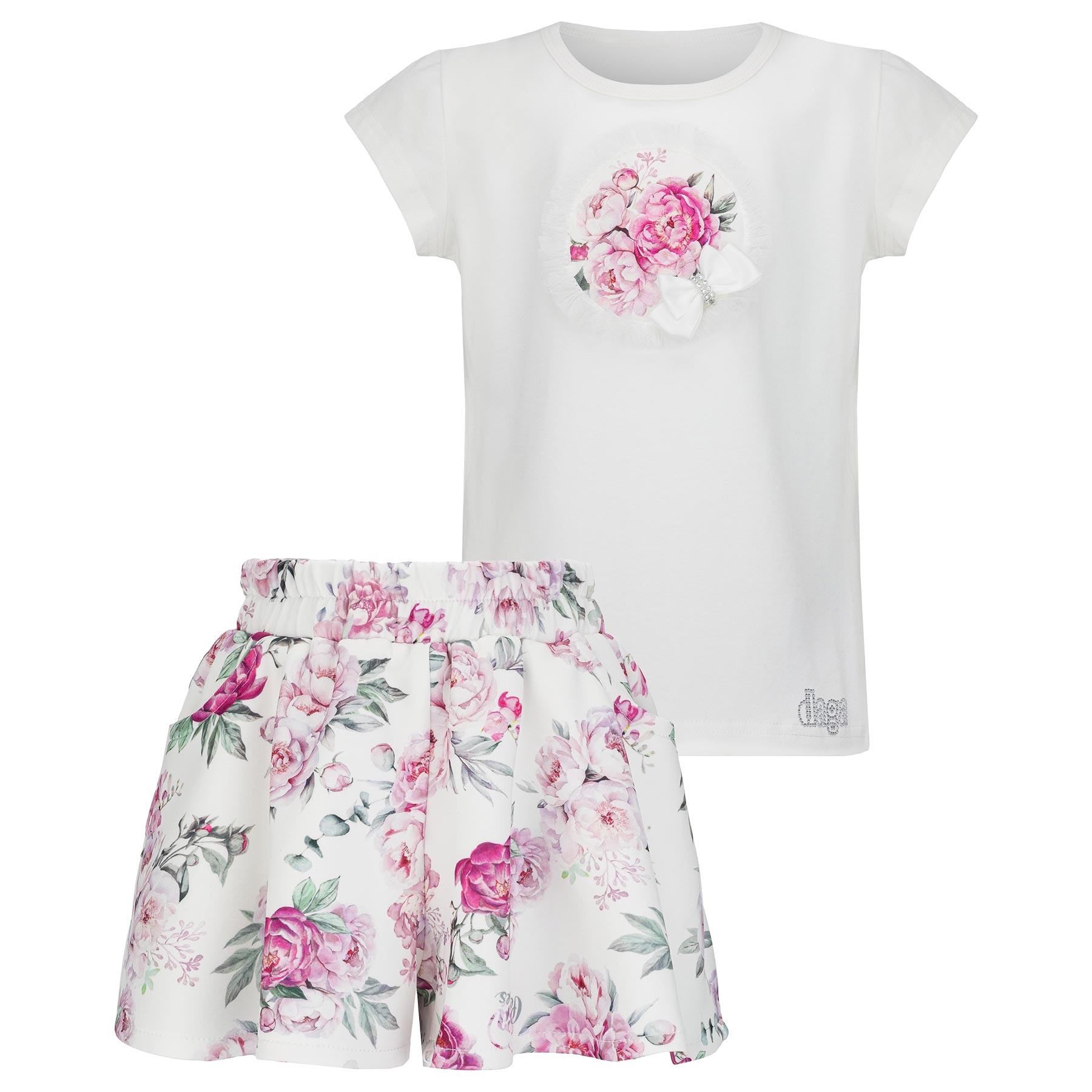 Daga - Girls Blush Harmony 2026 Summer Collection - Gorgeous short sleeve top and peony print shorts set. Soft stretchy jersey set which is easy to fit and wear. Matching items also available. Made in Poland. Perfect little sister/big sister outfits.