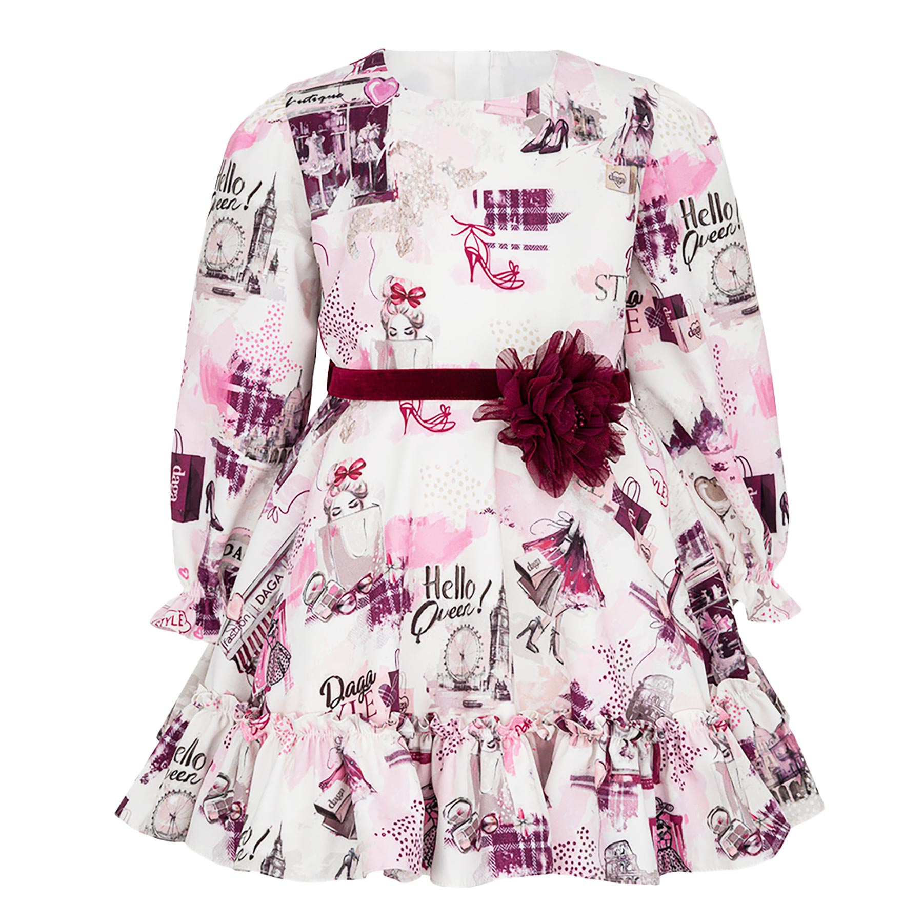 Daga Girls Fashion Street Ruffle Dress - Ivory Burgundy