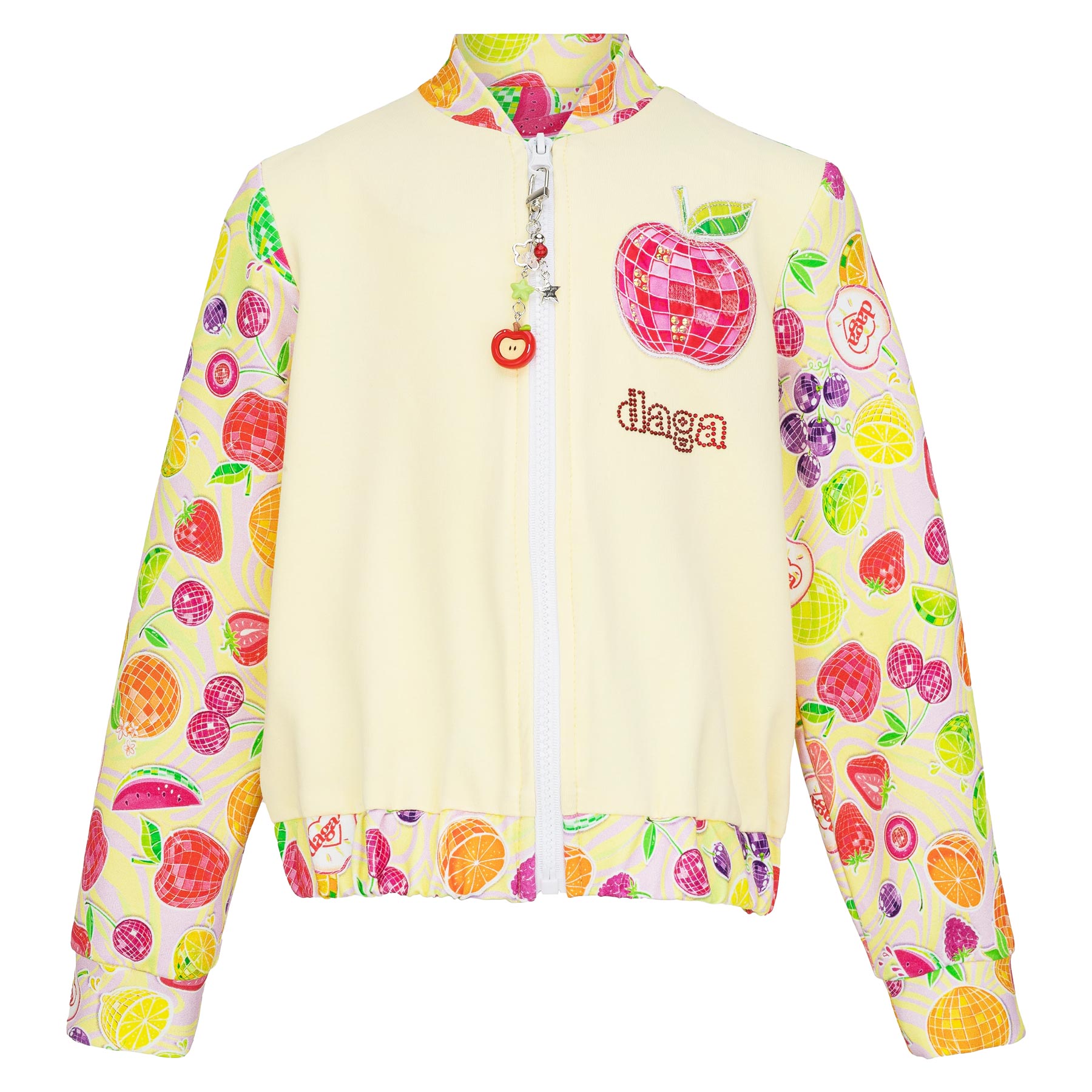 Daga - Girls Tutti Frutti 2026 Summer Collection - Gorgeous long sleeve jacket/cardigan with applique and print sleeves with elasticated waistband and cuffs - front zip with logo pull. Soft stretchy jersey jacket which is easy to fit and wear. Matching items also available. Made in Poland. Perfect little sister/big sister outfits.