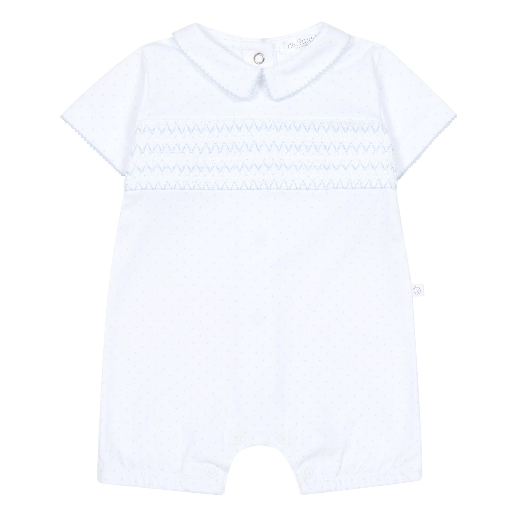 Deolinda Baby Boys Confetti Smocked Bodice Polka Romper - White Blue