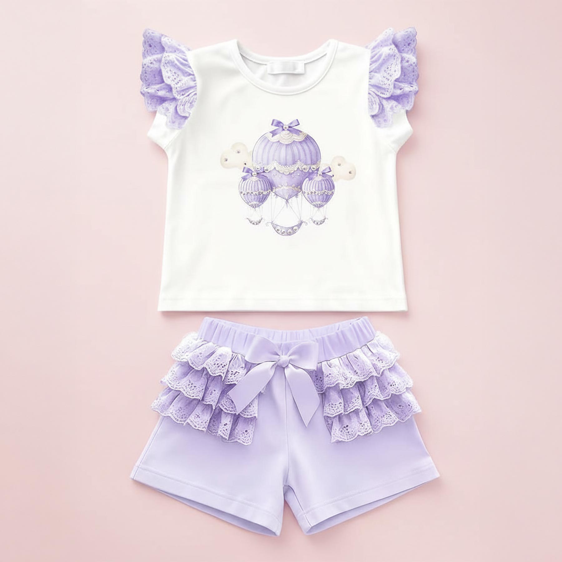 Giorgio Bambini Girls Air Balloon Top Ruffle Shorts & Hairband Set X 3 - Lilac