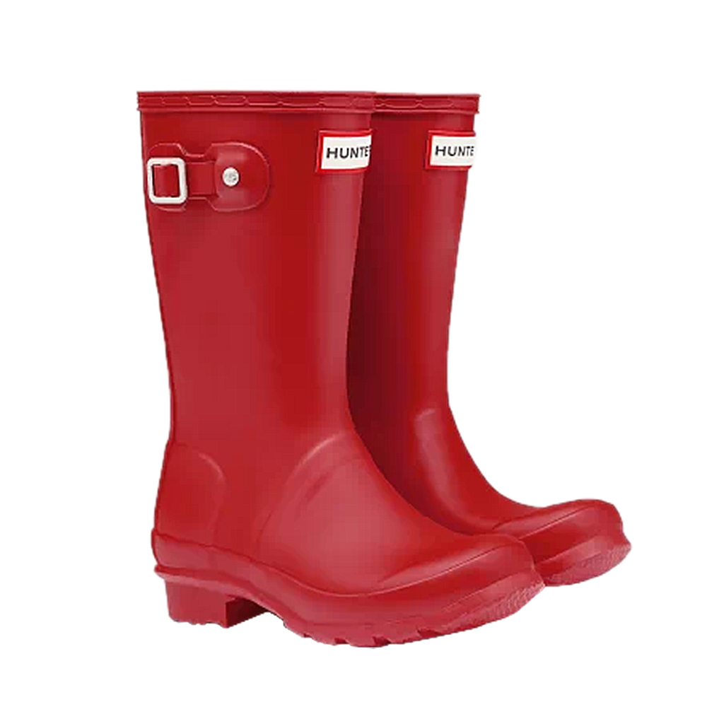 The handcrafted Hunter Original Big Kids wellington boot forms a mini version of the iconic Original Tall Boot, the Original Kids Wellington is a dream for junior explorers. This hunter waterproof boot is handcrafted from natural rubber. Designed for adventures,  specialised kids wellies are highly resistant to wear and abrasion with a 100% recycled polyester lining for comfort. Reflective patches and the Hunter Original tread offer added safety so you can be confident letting them take on the elements whatever the weather..