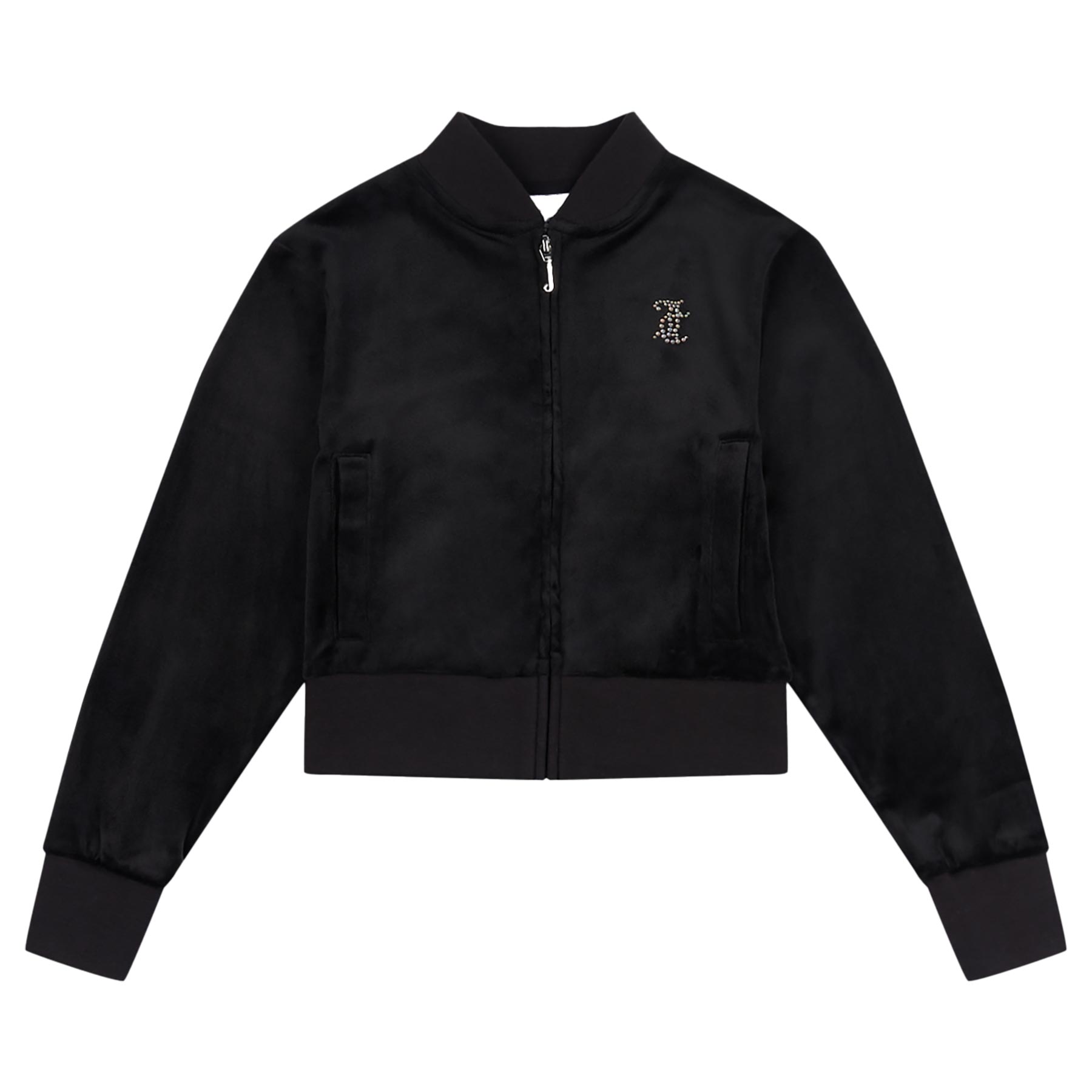 Juicy Couture Girls Cropped Zip Through Velour Sweater - Jet Black