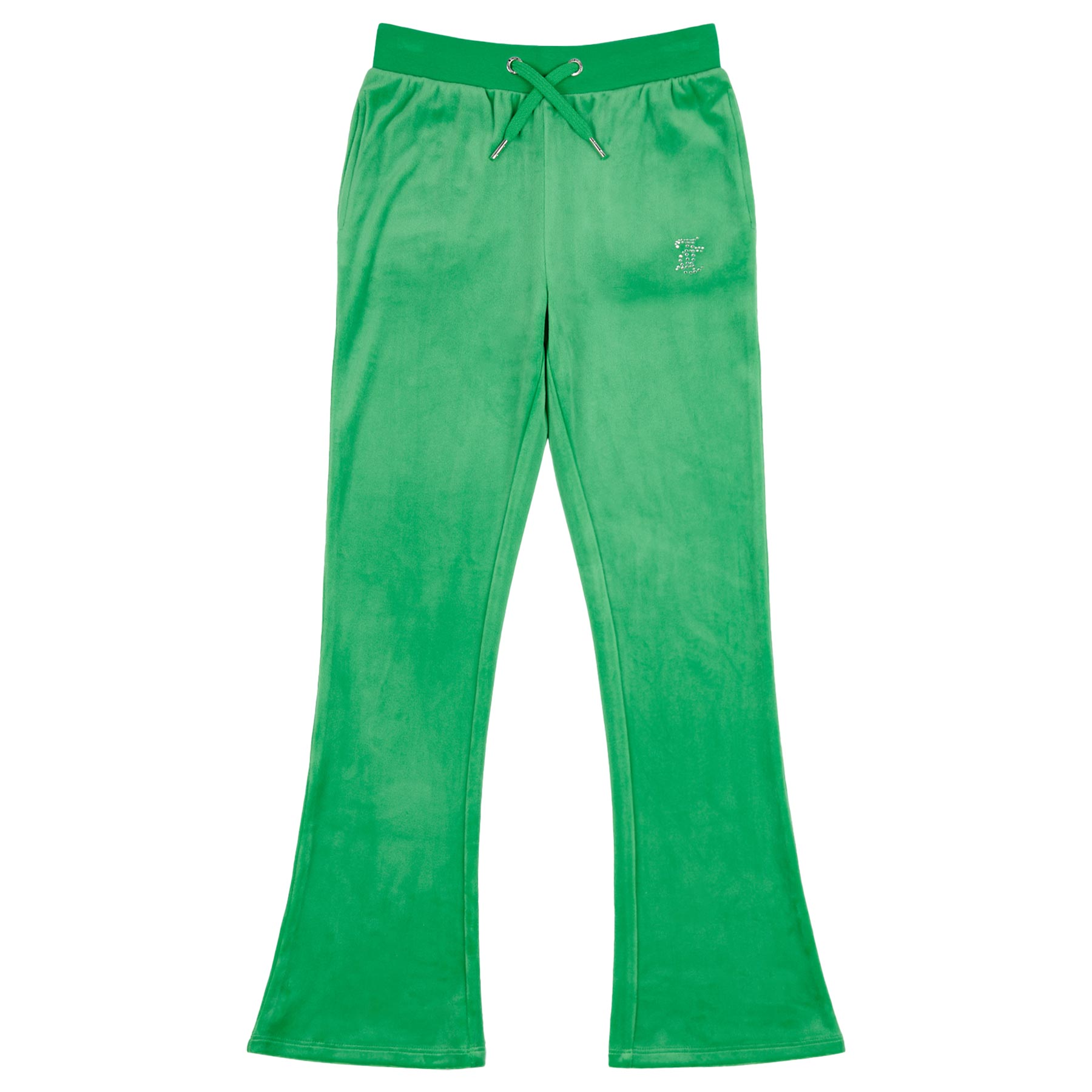 Juicy Couture Girls Diamante Bootcut Velour Jogger - Green Bee