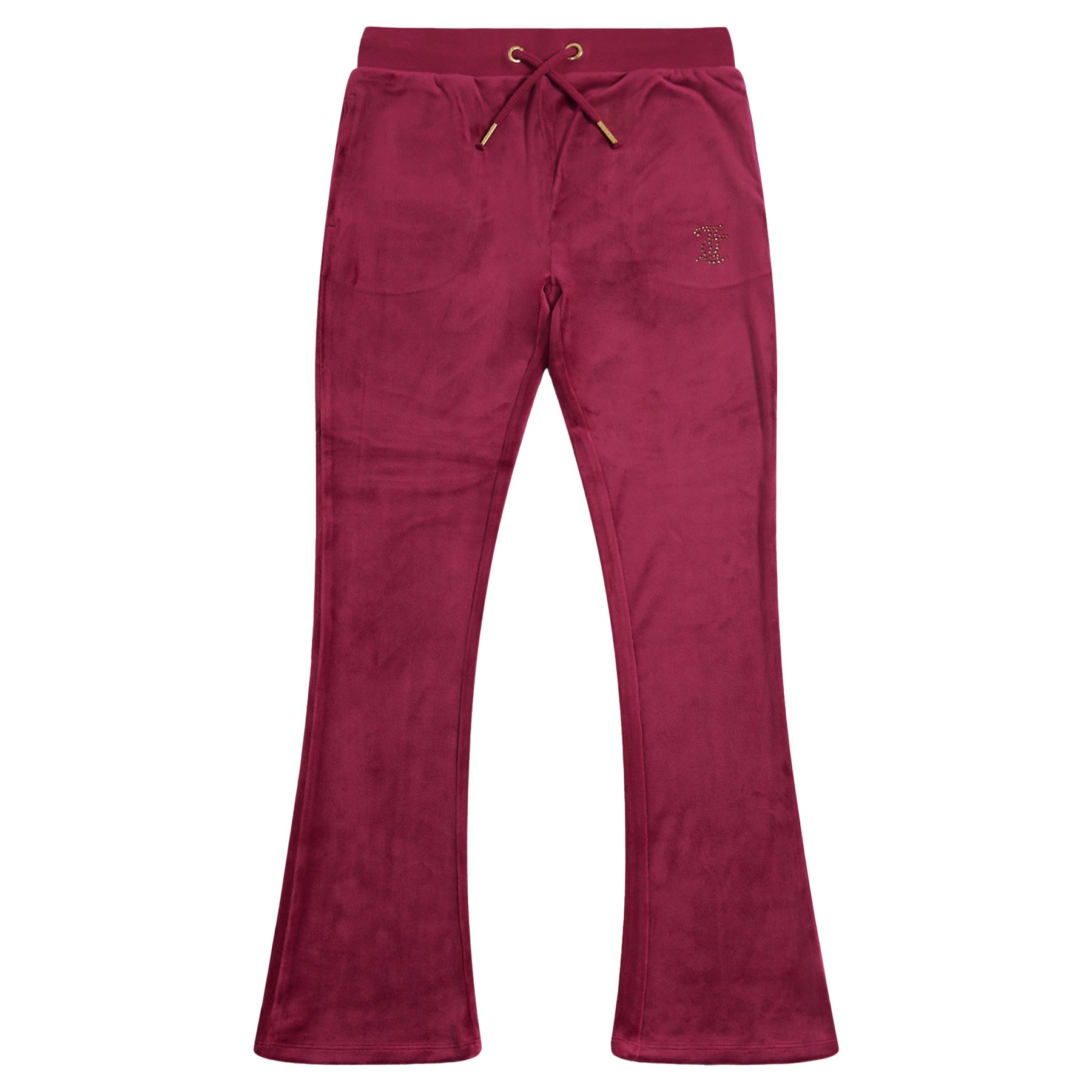 Juicy Couture Girls Diamante Bootcut Velour Jogger - Red Plum