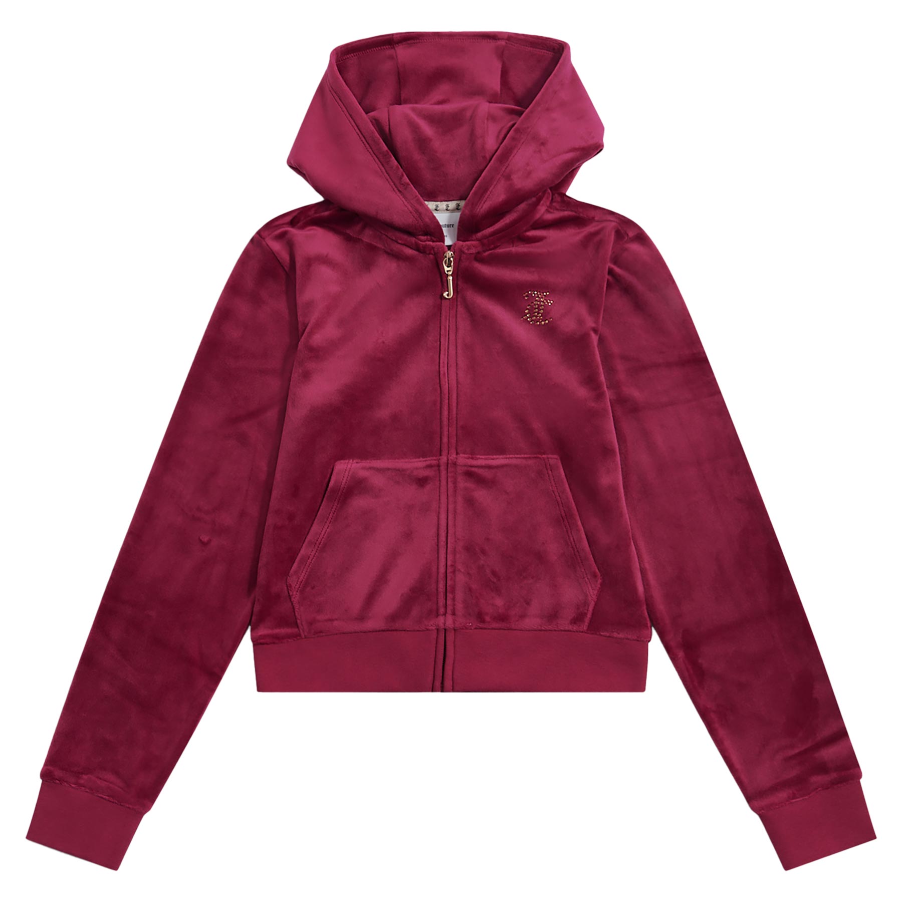 Juicy Couture Girls Zip Through Diamante Velour Hoodie - Red Plum