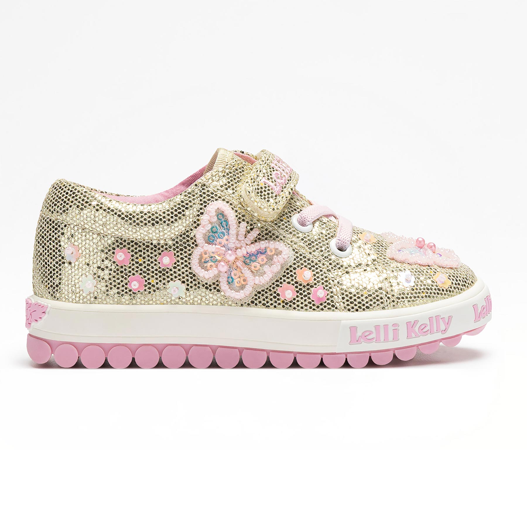 Lelli Kelly Emerald Beaded Butterfly Flat Glitter Roller Sole Pump - Gold
