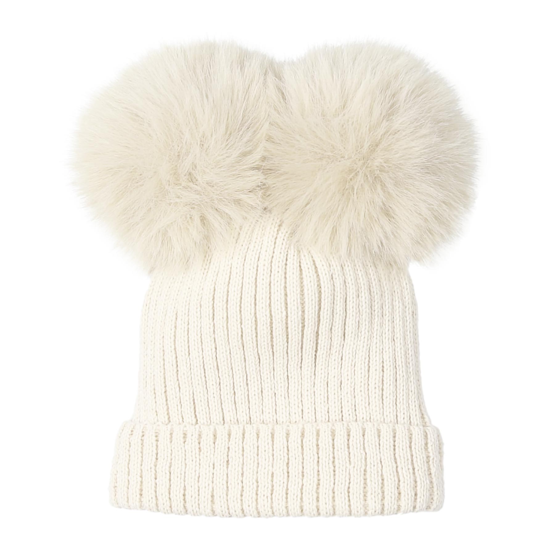 Mac Ilusion Baby Knitted Collection Detachable Double Pom Pom Hat - Ivory