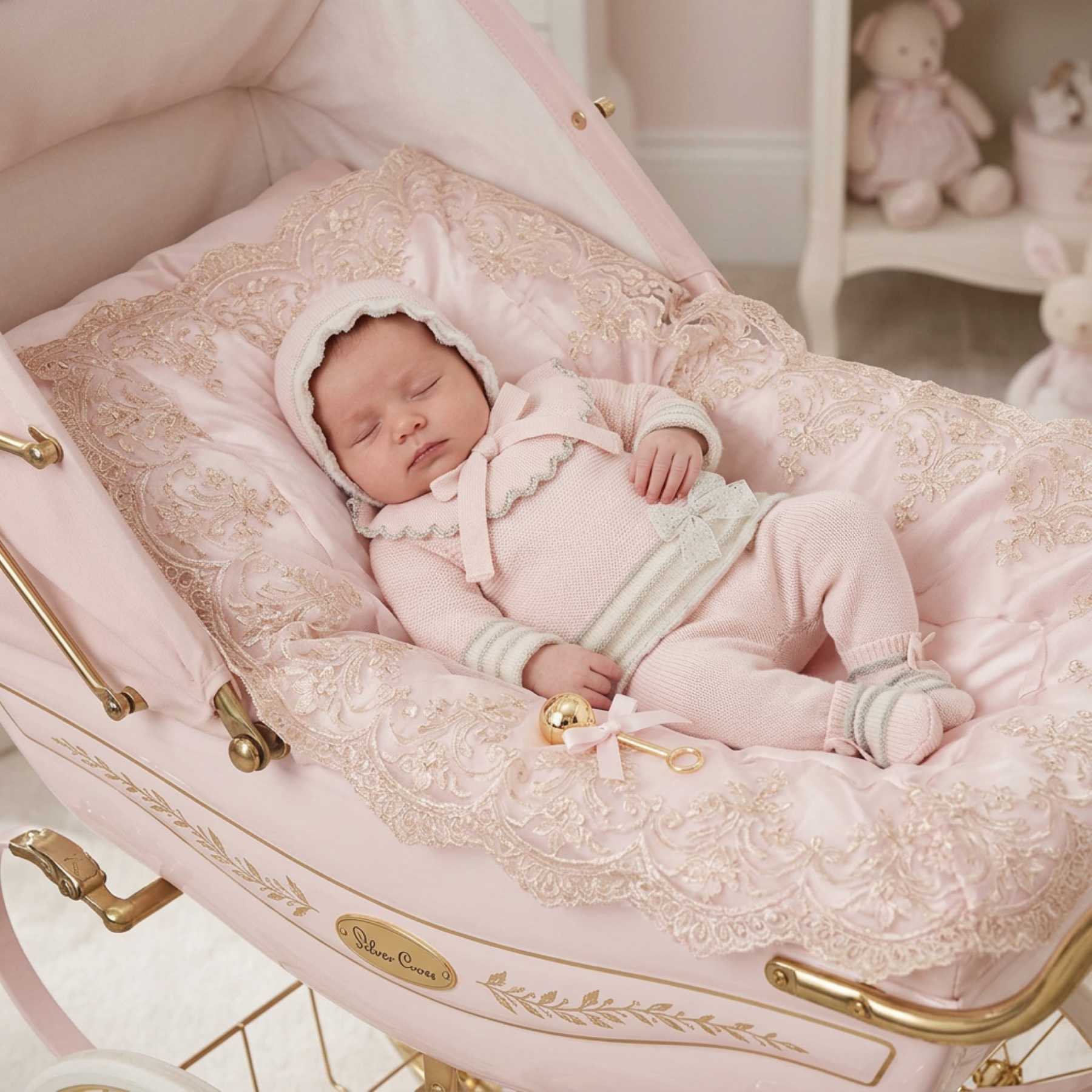 Mac Ilusion Baby Knitted Collection Girls Sweater Bottoms Bonnet Set X 3 - Nude Pink Ivory Gold