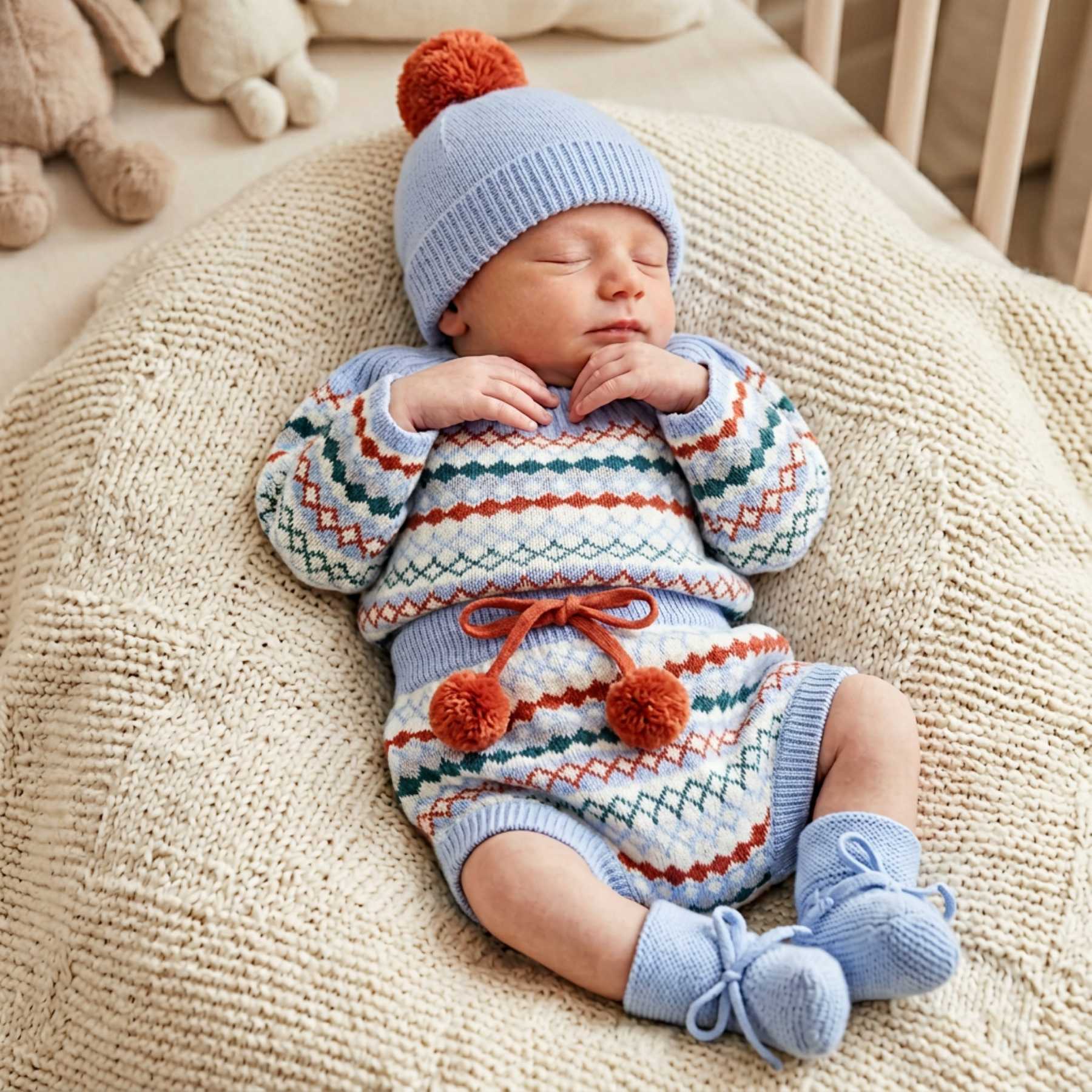 Mac Ilusion Baby Knitted Collection Jacquard Sweater Bottoms Hat Booties Set X 4 - Sky Blue