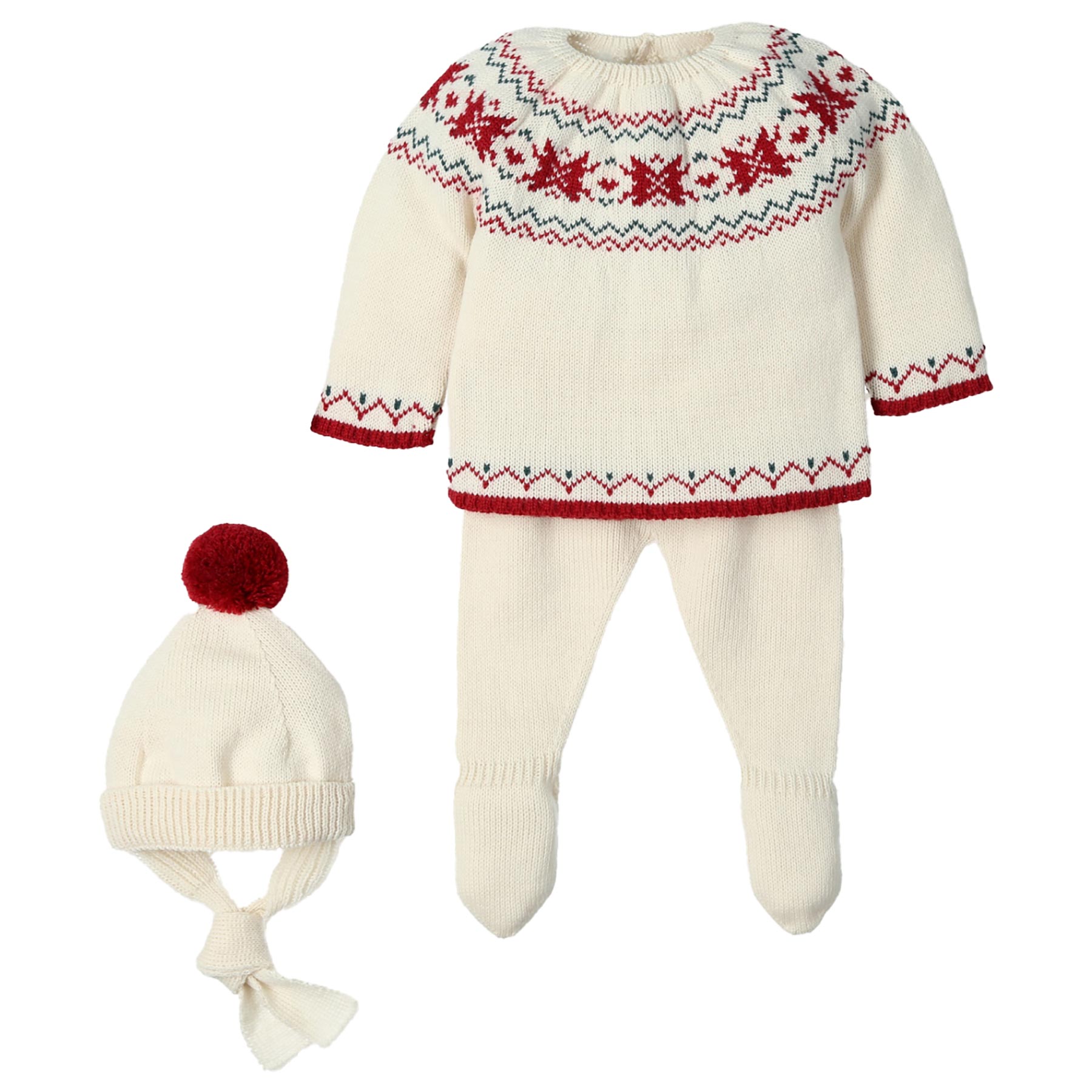 Mac Ilusion Baby Knitted Collection Jacquard Sweater Leggings Hat Set X 3 - Cream Burgundy Green