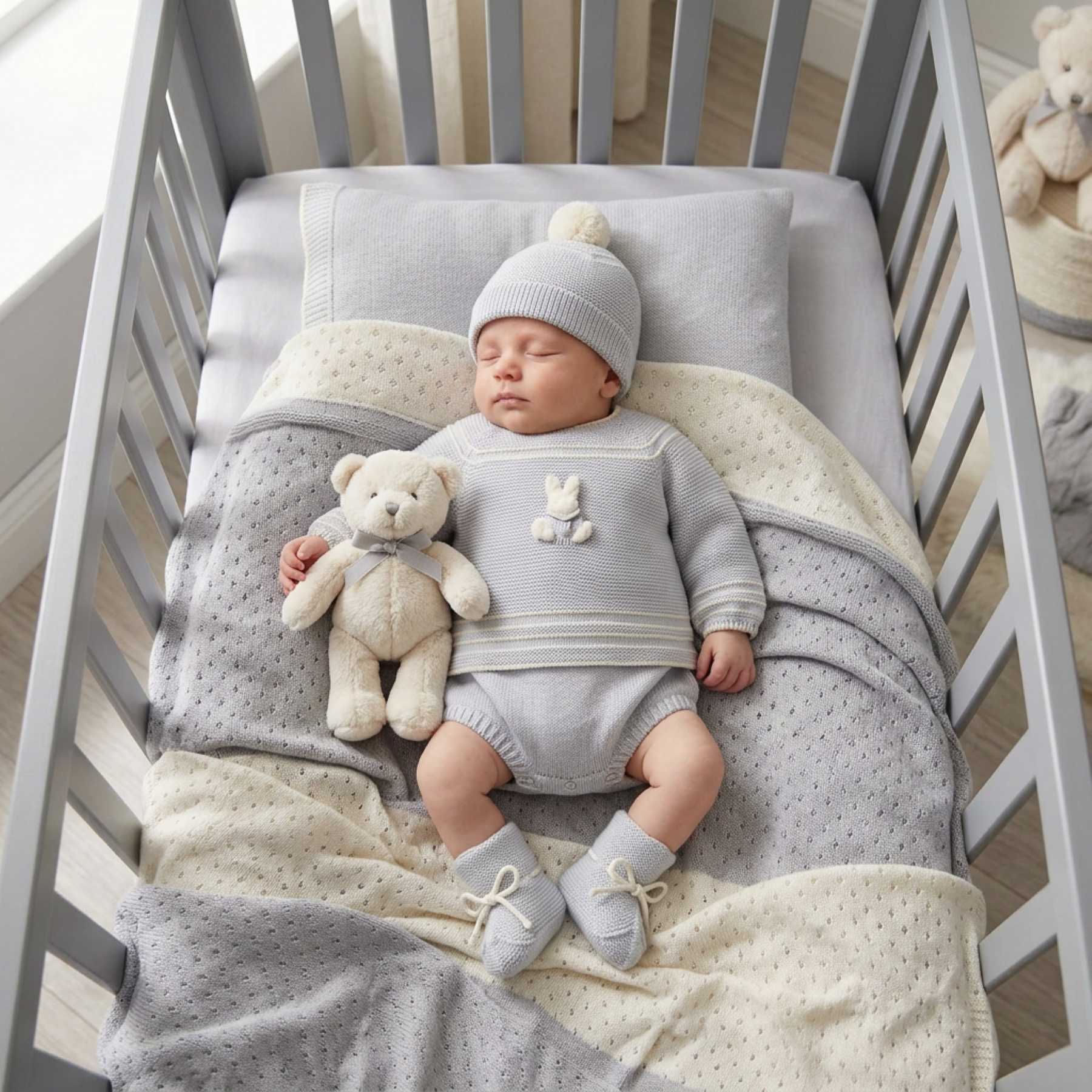 Mac Ilusion Baby Knitted Collection Rabbit Sweater Bottoms Hat Booties Set X 4 - Moonlight Grey