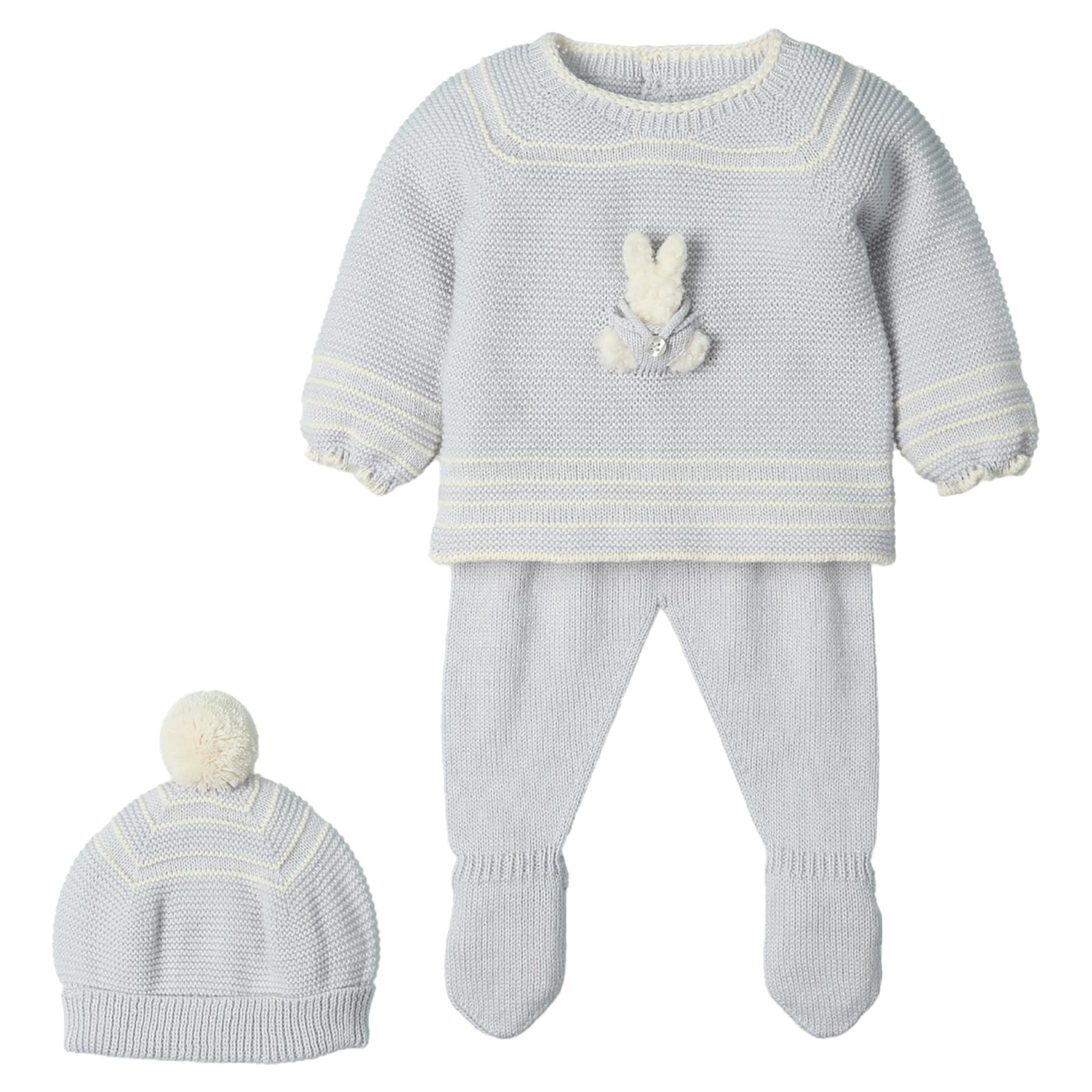 Mac Ilusion Baby - Knitted collection - gorgeous winter knit baby sweater, feet in leggings and hat with contrasting pom pom - cute rabbit applique on the front of the sweater. A perfect baby gift - there is a matching blanket/shawl also available. Sizing is good for the age in this set. Made in Spain - easy to wear and comfortable. A perfect baby gift which is presented in a MacIlusion box. Available in sizes 00 premature to 6 months.