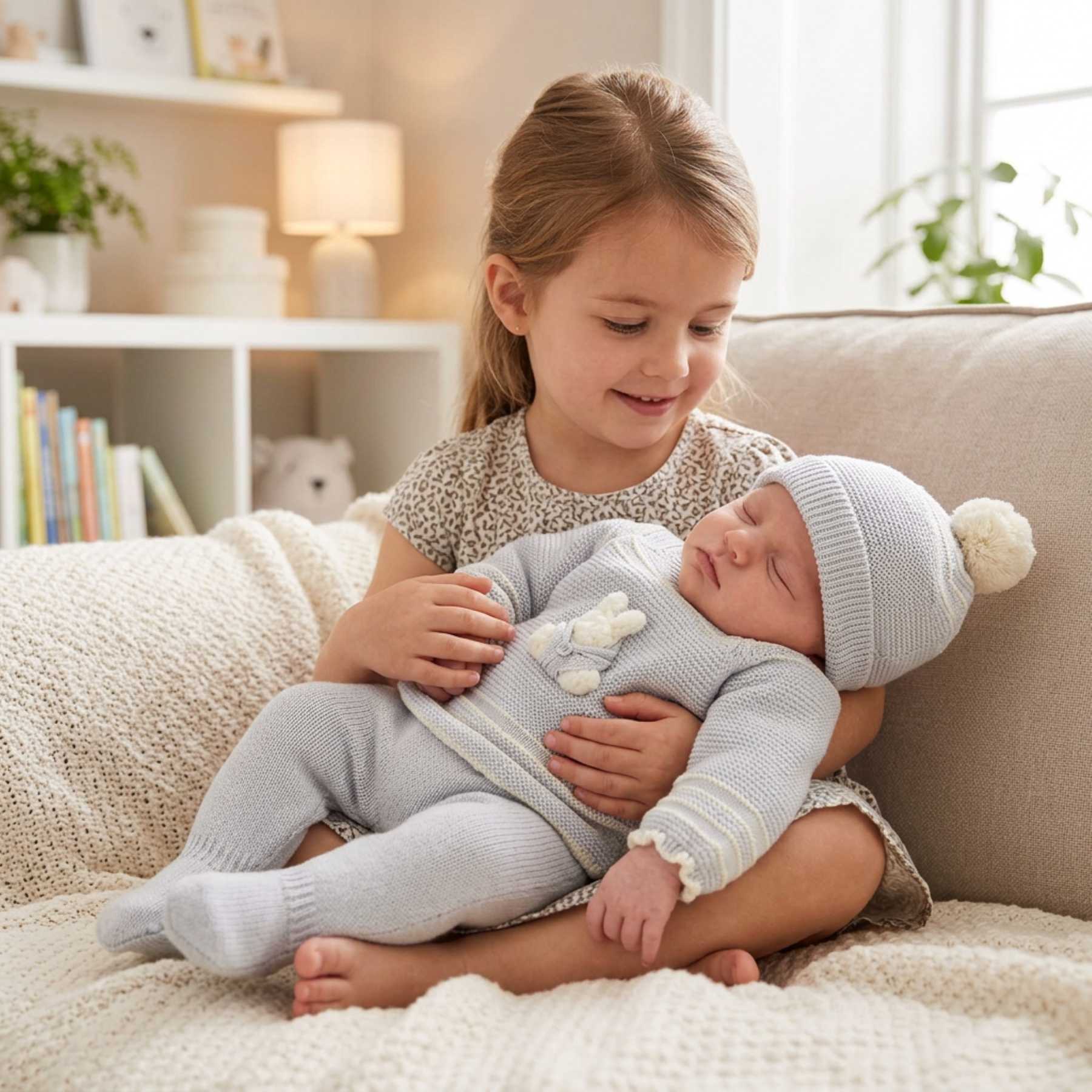 Mac Ilusion Baby Knitted Collection Rabbit Sweater Leggings Hat Set X 3 - Moonlight Grey