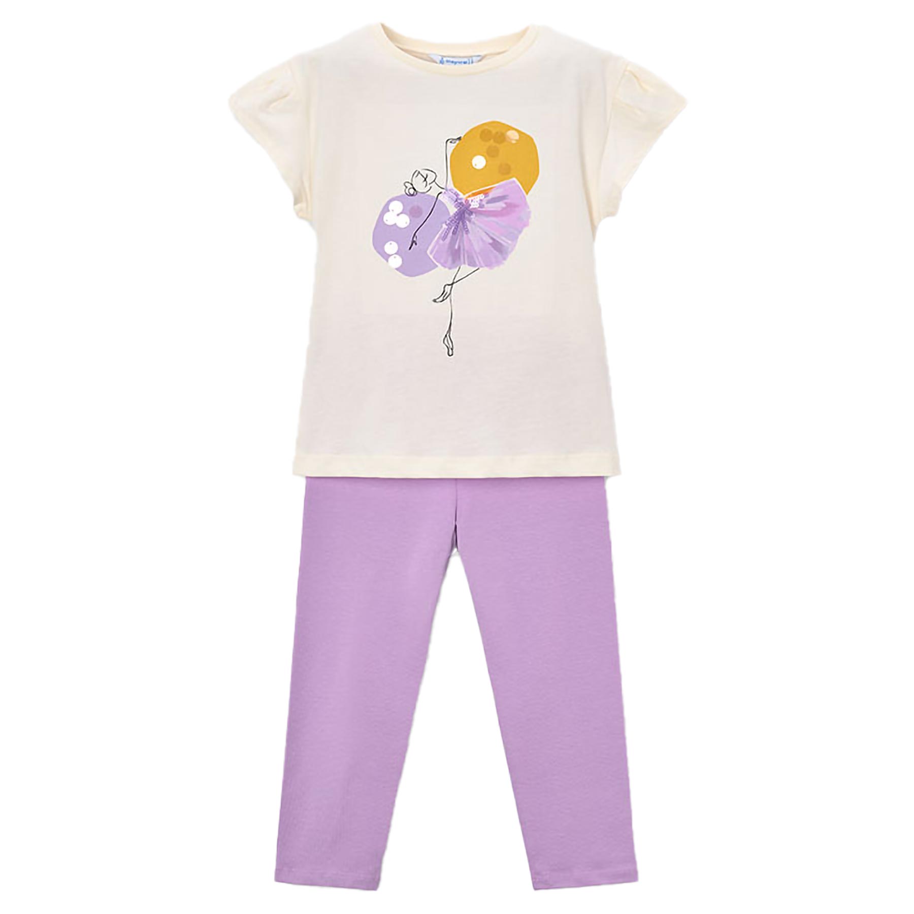 Mayoral Girls Summer Ballerina Print Top & Legging Set X 2 - Cream Lilac