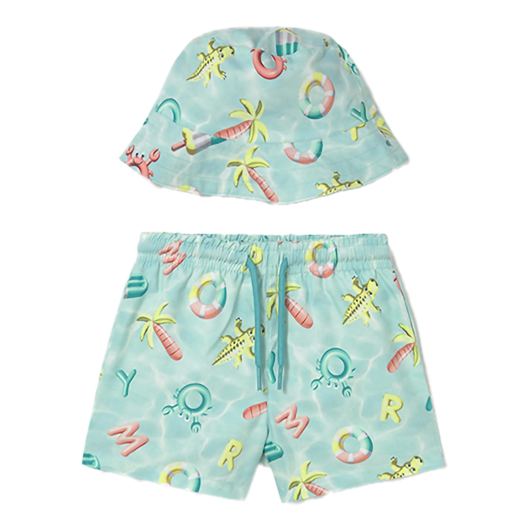 PRE ORDER Mayoral Toddler Boys Summer Hat & Crocodile Print Swim Shorts Set X 2 - Aquamarine
