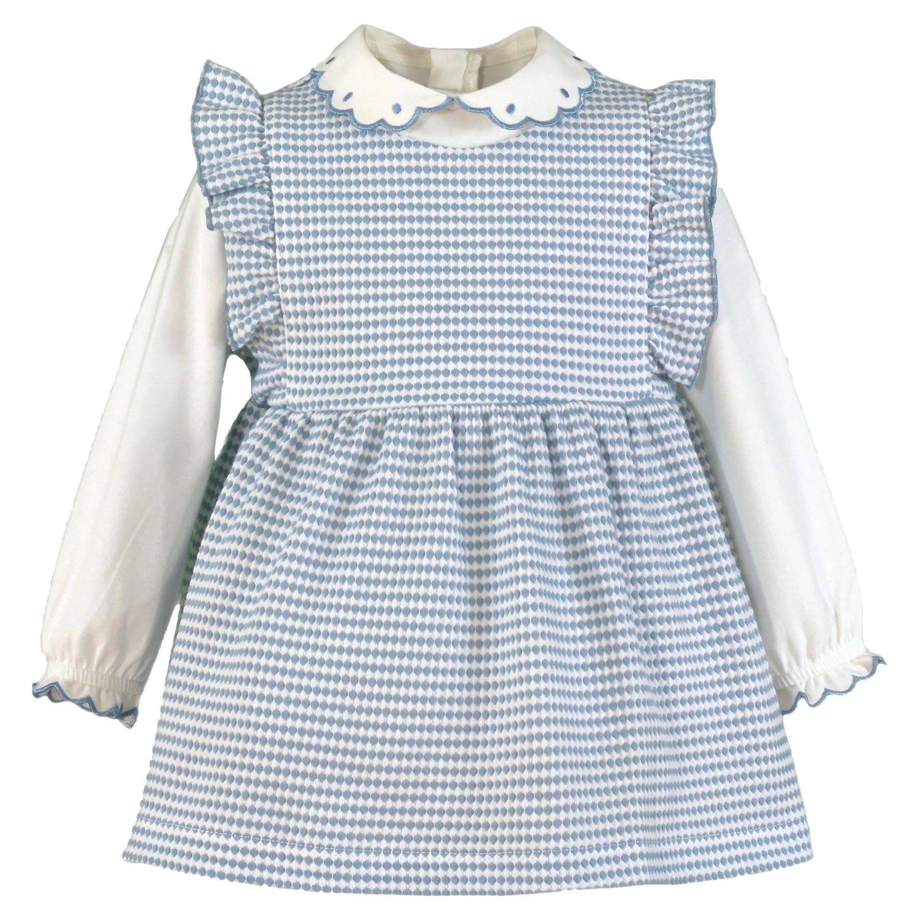 Miranda Baby Girls Frill Check Dress With Blouse - Blue