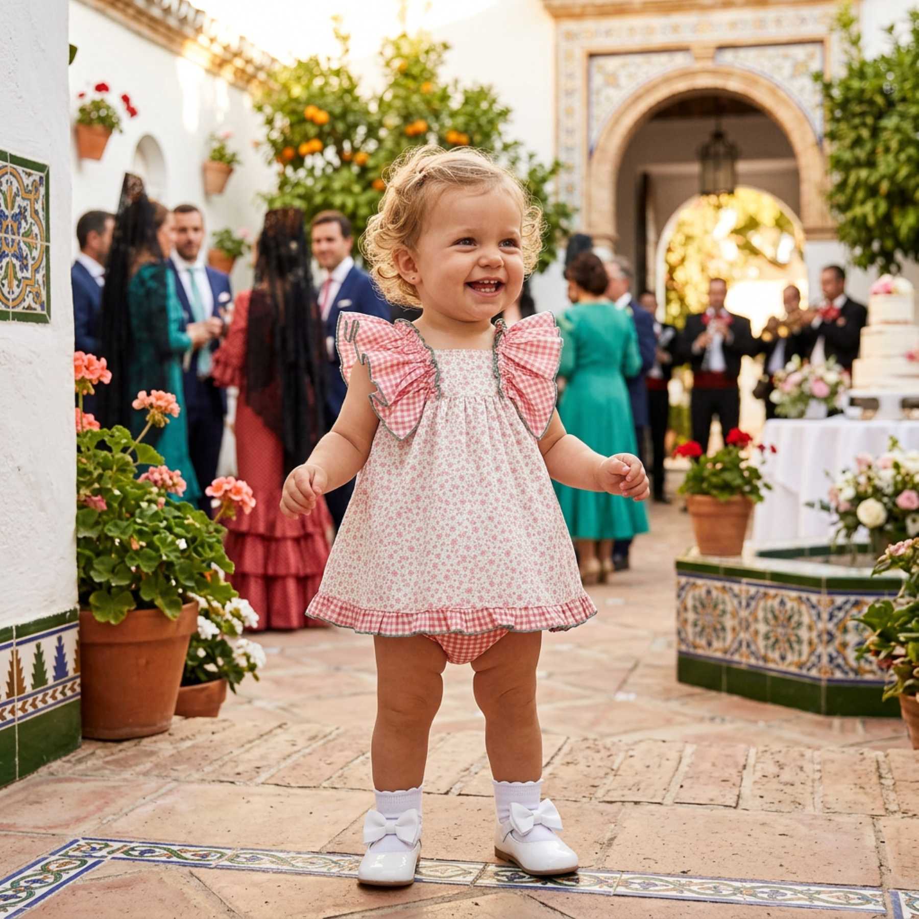 - Gingham & Floral ruffle dress