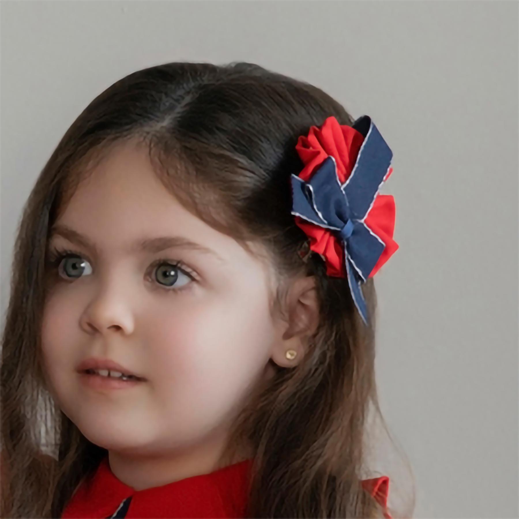 Miranda Baby Girls Velvet Bow Rosette Hairclip - Red Navy