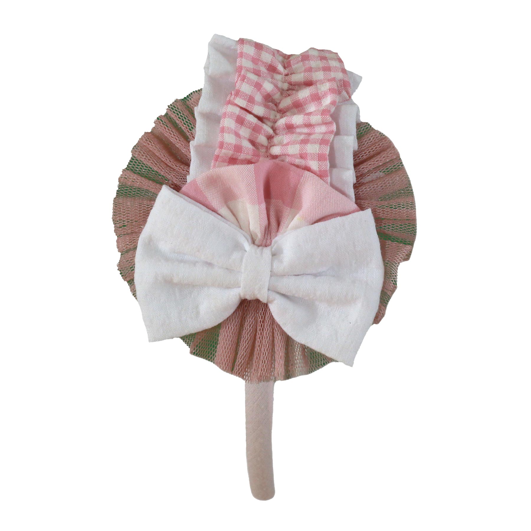 Miranda girls gorgeous detachable pink check and gingham rosette hair clip on a covered headband.  Wear as a headband or as a hair clip. One Size.