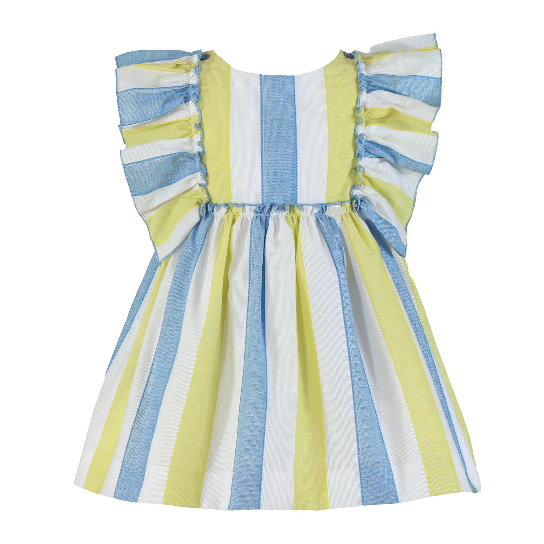 Miranda Girls Wide Stripe Ruffle Dress - White Lemon Blue