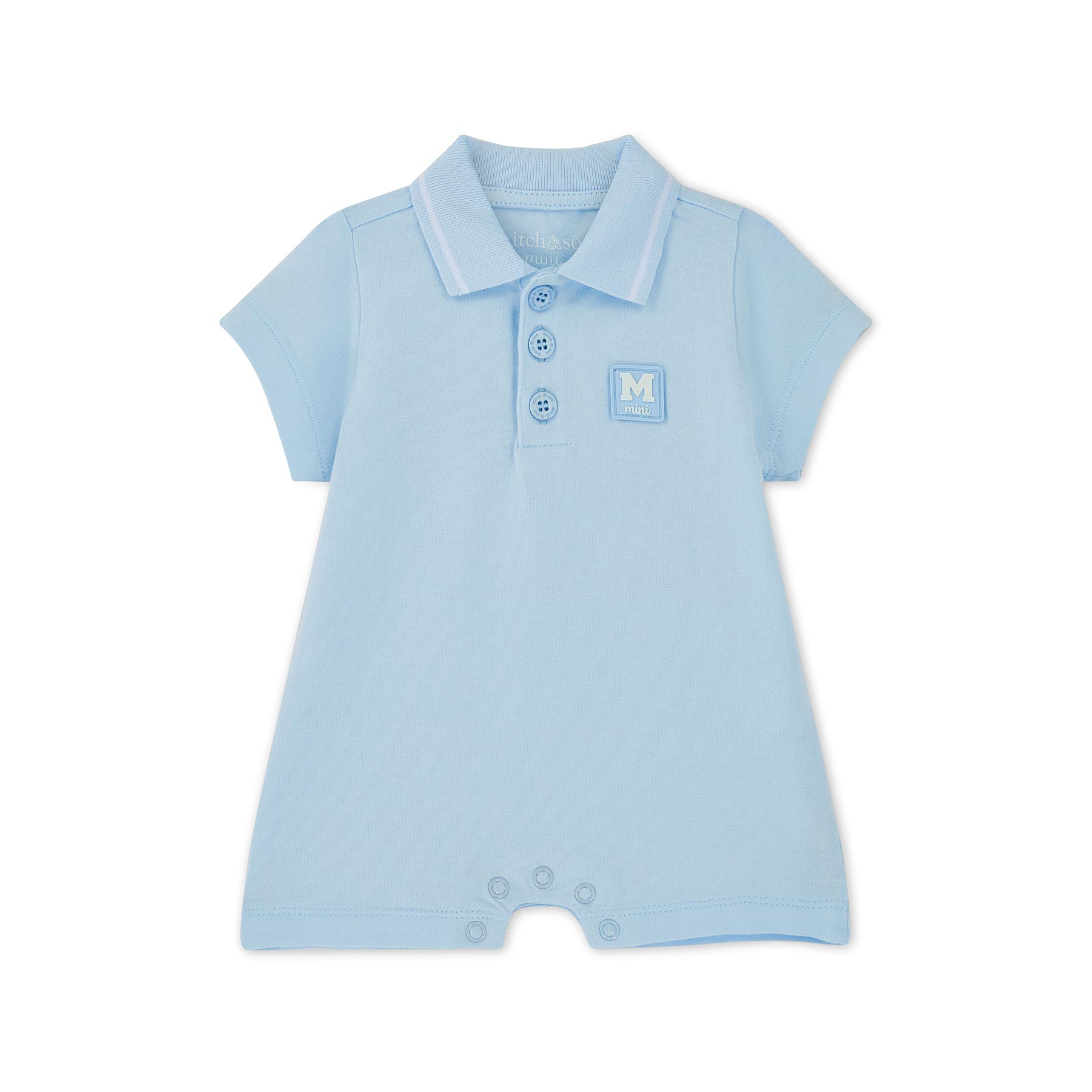 Mitch & Son Mini Boys Collection  - The Nash polo romper features a classic polo style collar with a logo badge on the front.   Easy to wear and comfortable.  Wear with other items from this collection.  Perfect baby brother/ little brother outfit for summer.