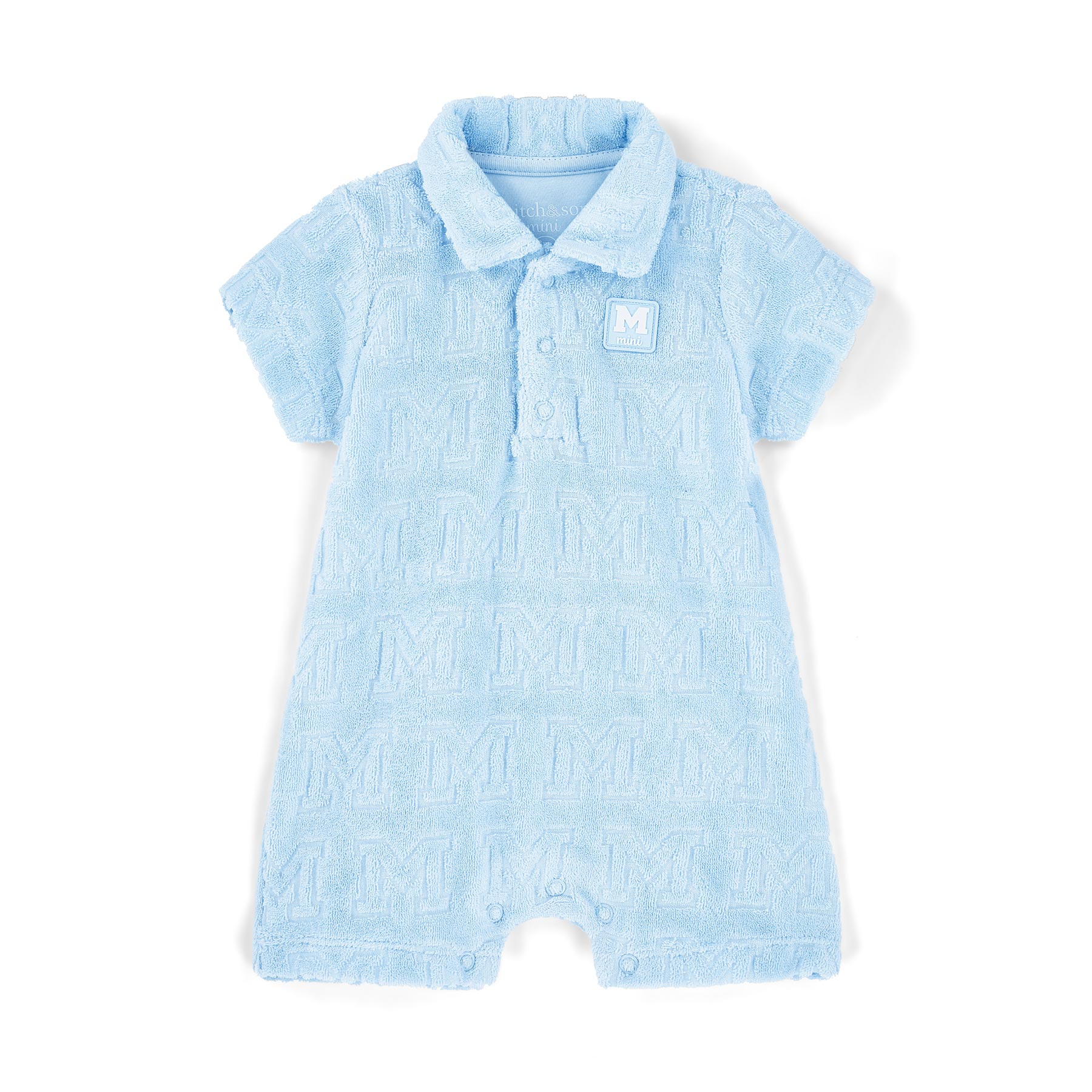 Mitch & Son Mini Boys Collection  - The Nicholas romper is made from branded toweling, featuring a polo style collar and logo badge. Easy to wear and comfortable.  Wear with other items from this collection.  Perfect baby brother/ little brother outfit for summer.
