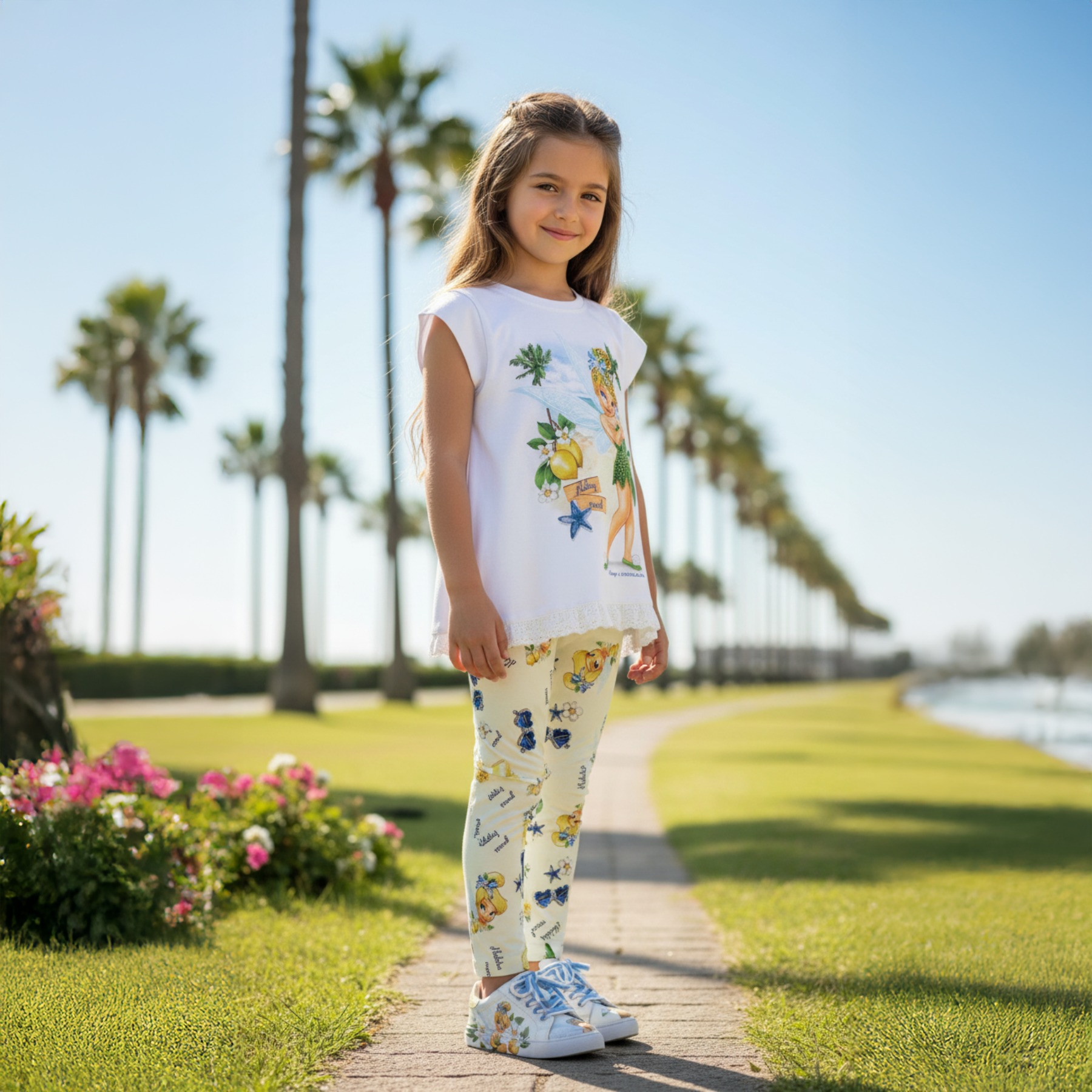 Monnalisa Girls Tinkerbell Tunic & Legging Set X 2 - White Yellow