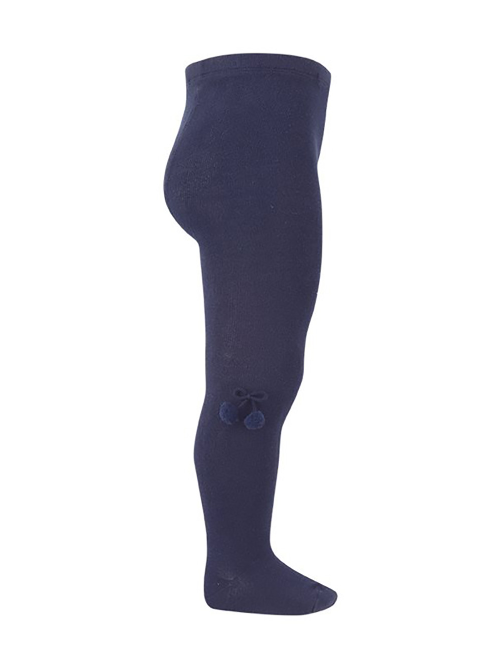 Condor Socks - plain knit cotton/elastane stretchy tights with elasticated waistband and reinforced toe and heel with a pair of small pom poms on the calf of each leg.  Made in Spain and available in ages 000/0-3 months to 4/3-4 years.  Available in seven colours.